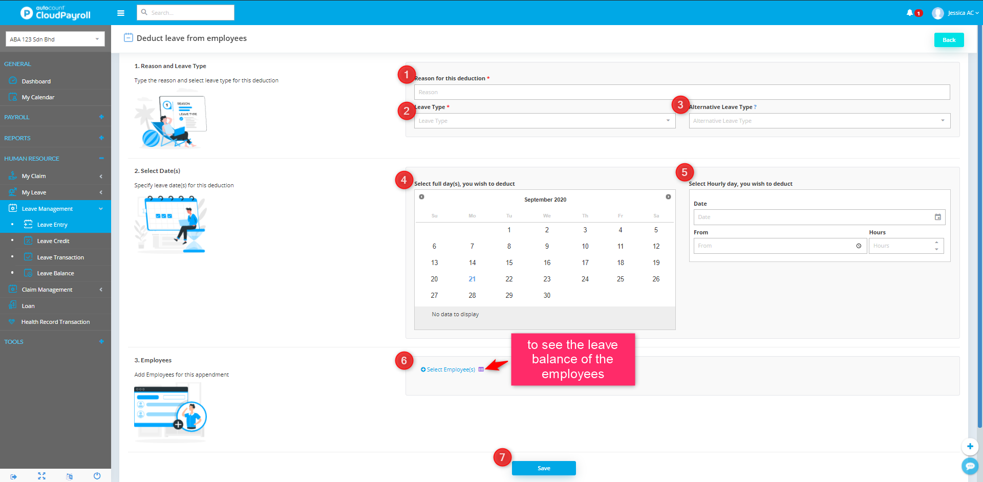 3. Choose the Alternative Leave Type to deduct in case the Leave Type selected in no. 2 is not available.