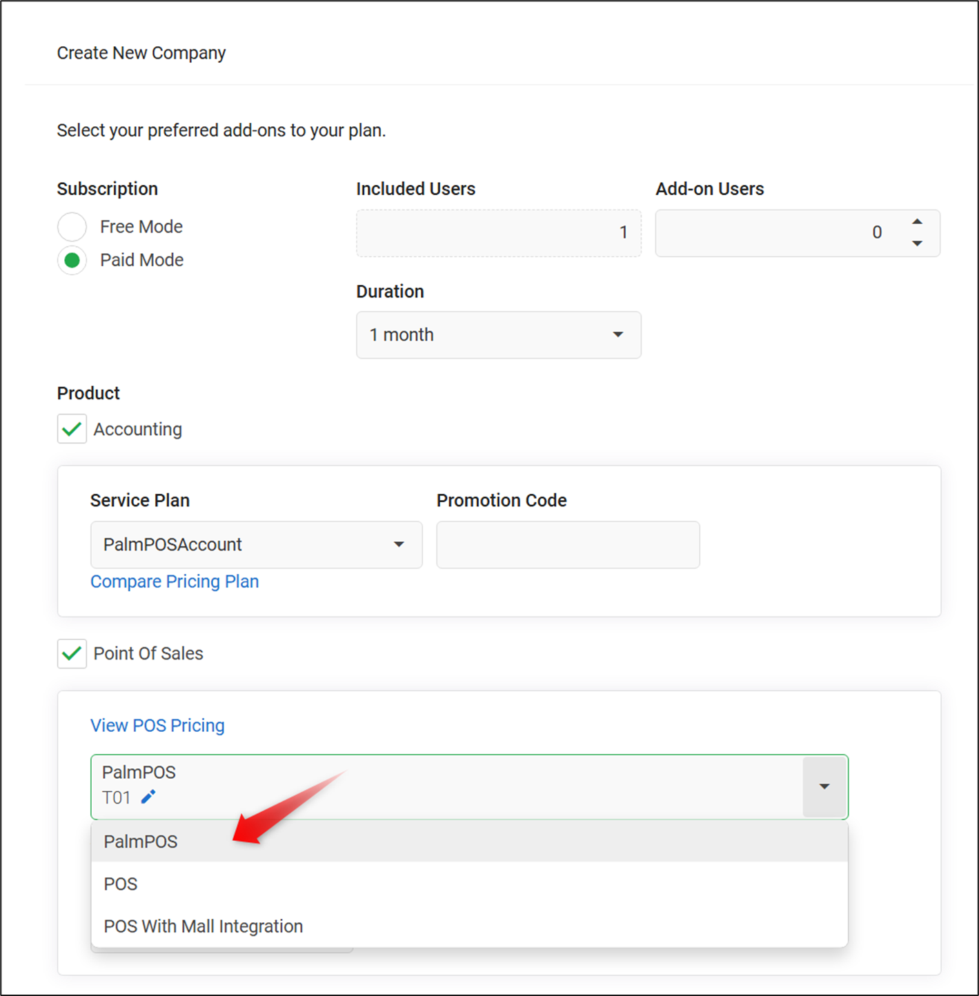 PalmPOS license is now available, you can make payment to proceed with your license through subscription portal. You can select your Cloud Accounting and Point of Sales plan in this page, and also duration for your subscription to make payment.