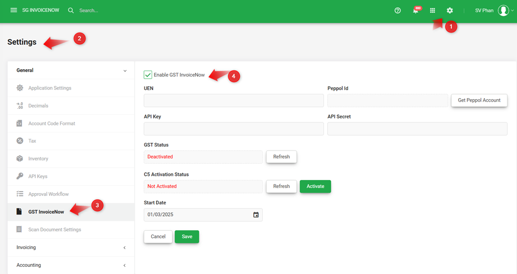 Added Singapore InvoiceNow function to support electronic invoice exchange via the Peppol network. This enables businesses to send and receive e-invoices in compliance with Singapore’s nationwide e-invoicing initiative.