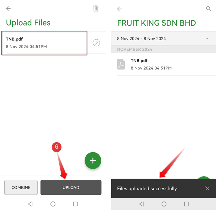 To proceed uploading, there is an Upload button to upload the files individually, OR you can use Combine button to combine into 1 file to upload.