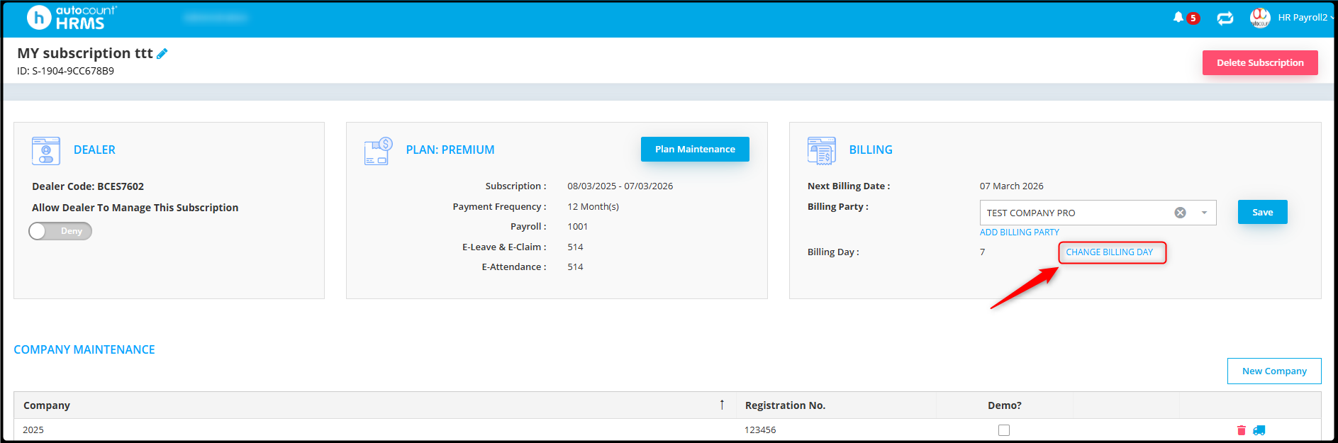 Note: You are not allowed to change the billing day if the subscription has expired. Please ensure that the subscription is still valid before proceeding.