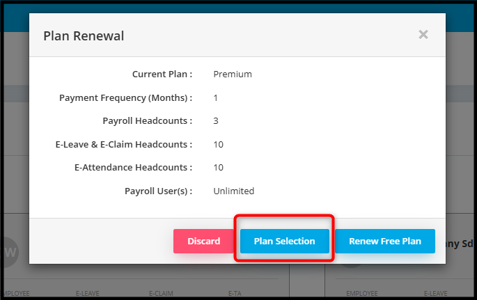 - Renew Free Plan (this option is only available if your previous subscription was a free plan. If not, it will display Renew Current Plan instead).