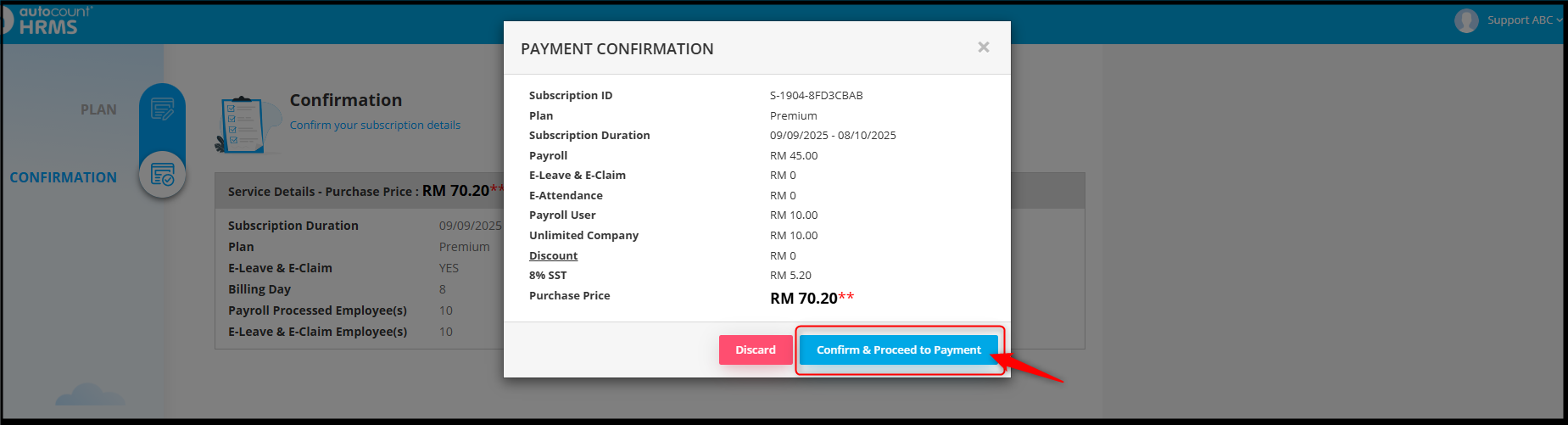 6. A Payment Confirmation tab will appear, then click Confirm & Proceed to Payment to complete the process.