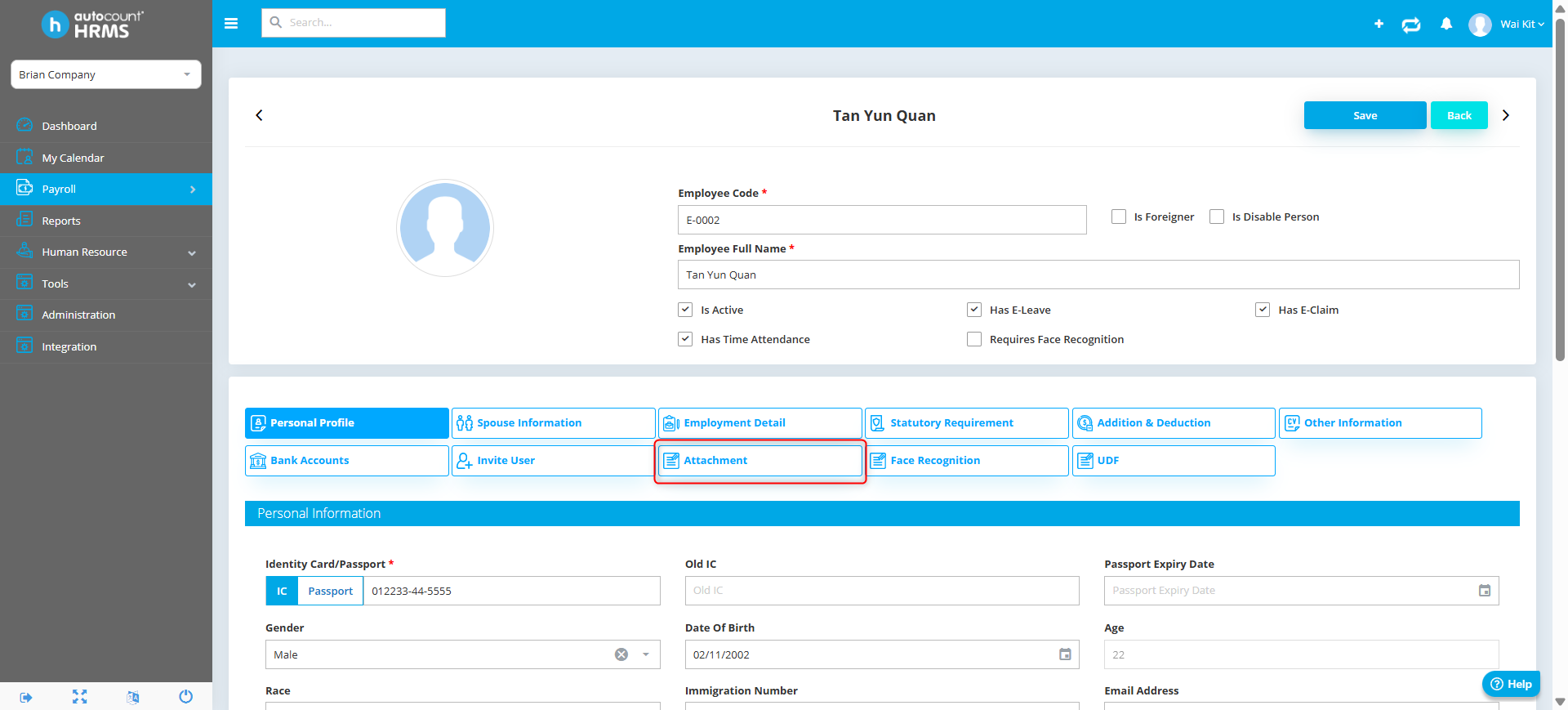 This guide will assist you in adding an attachment for an employee in their respective profile.