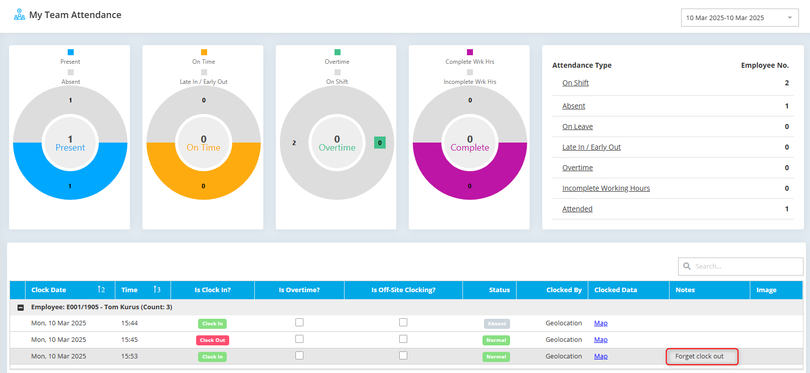 Once user is in the company, click on Human Resource > My Team Attendance under My Attendance.