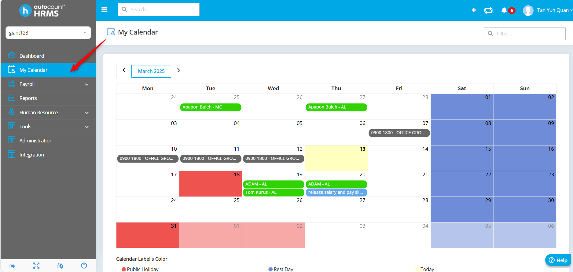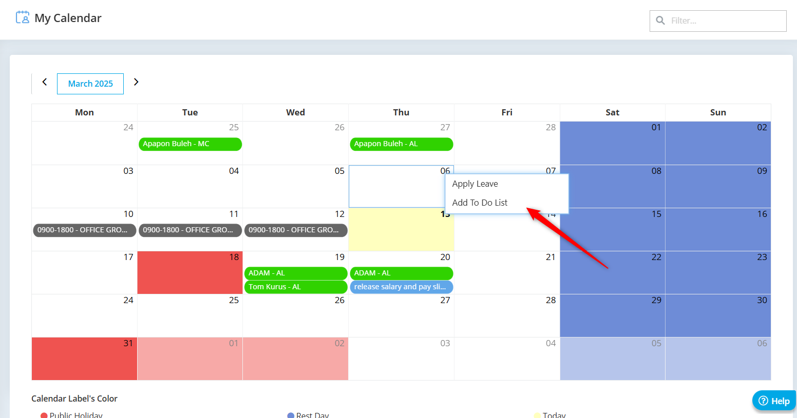 To setup a reminder / to do list in your calendar, click on My Calendar.