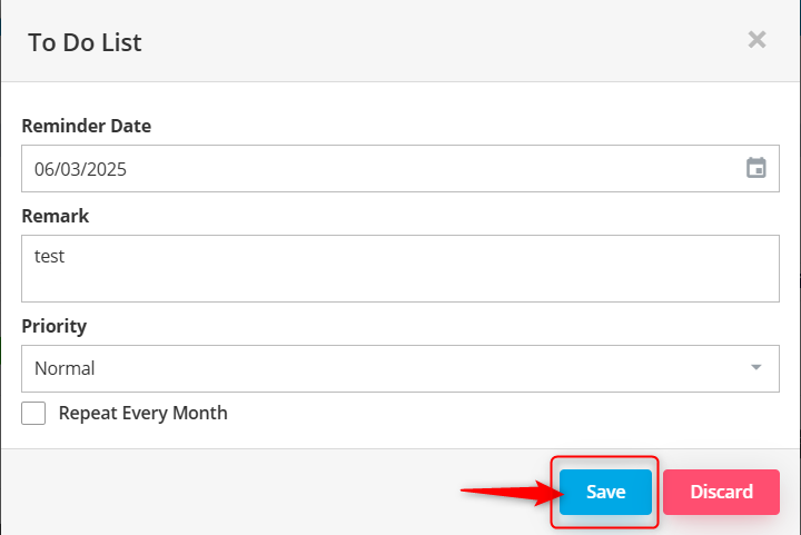 A to do list tab would appear, prompting users to key in the necessary details to create a To Do List. Once done, click on Save.