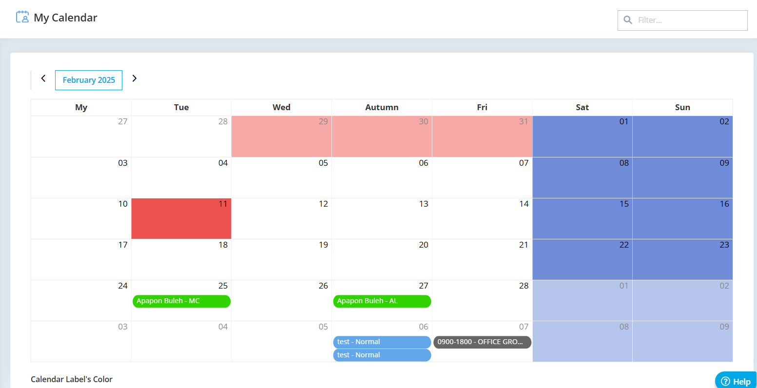 Go to My Calendar to preview the calendar and the staff on it (if any)