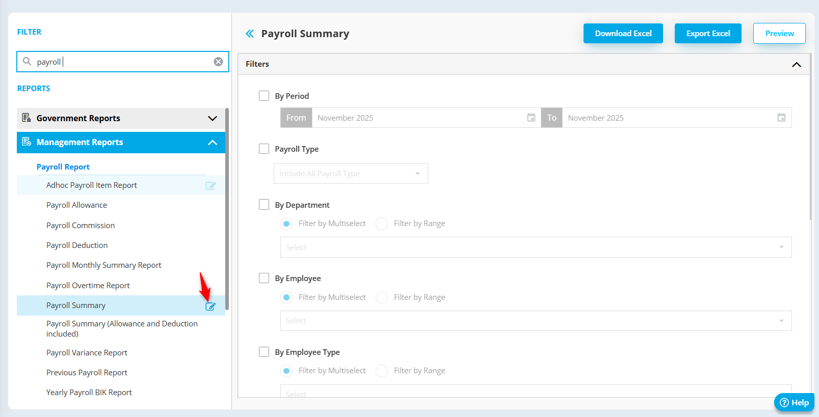 Select the desired report to customize and click on the edit icon next to the report name to edit the report.
