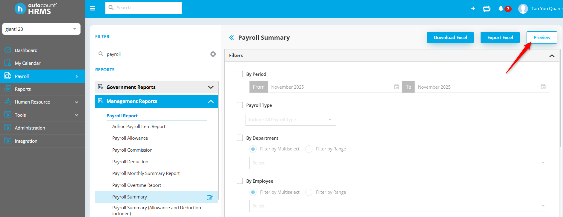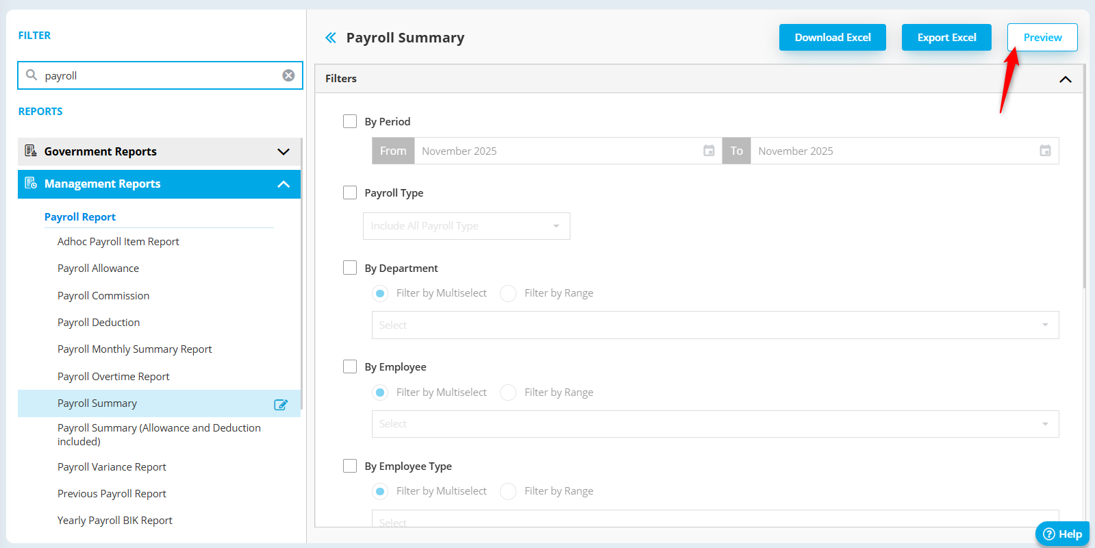 Then head back to the main page and click on Preview and select the newly designed report and click Preview to view the report.