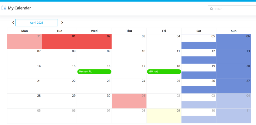 Now you / the employee should be able to preview the holiday date in My Calendar (Red Colour)