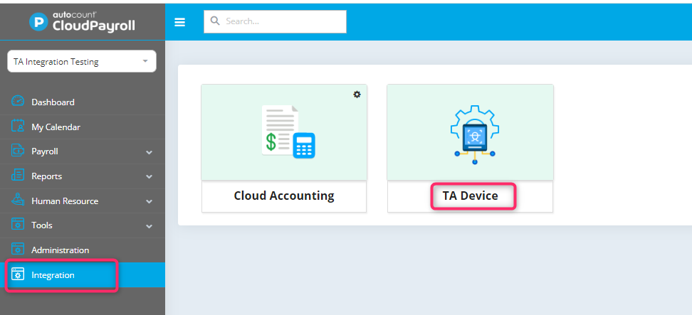Go to Integration > TA Device