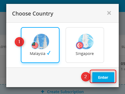 3. Then you may choose the country available which are Malaysia or Singapore. Once selected, then click on Enter.