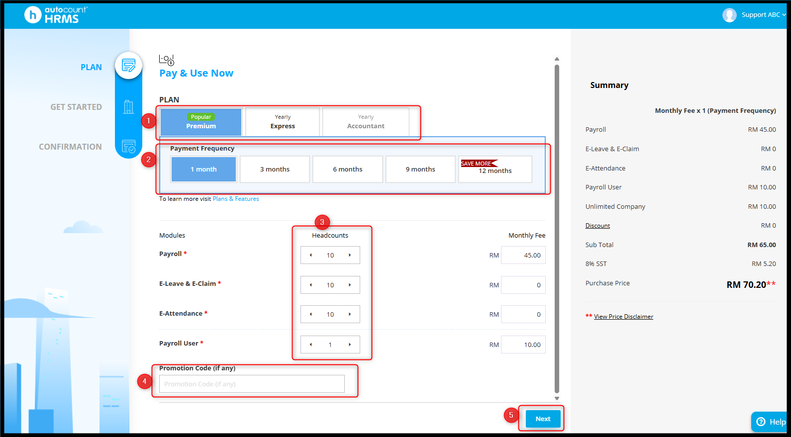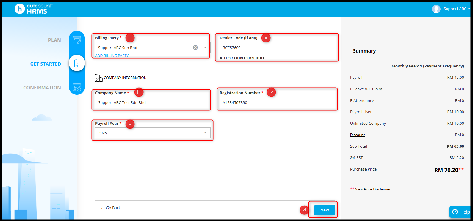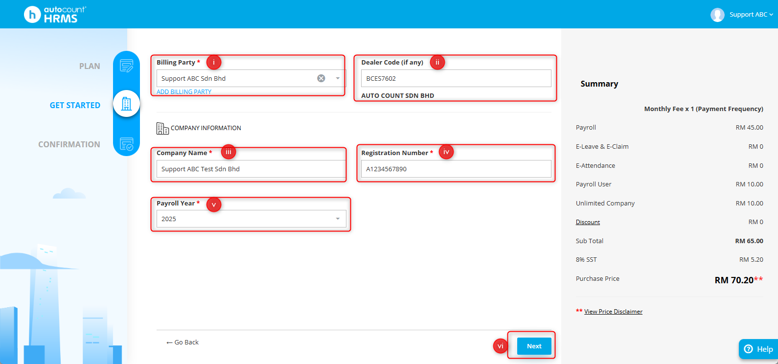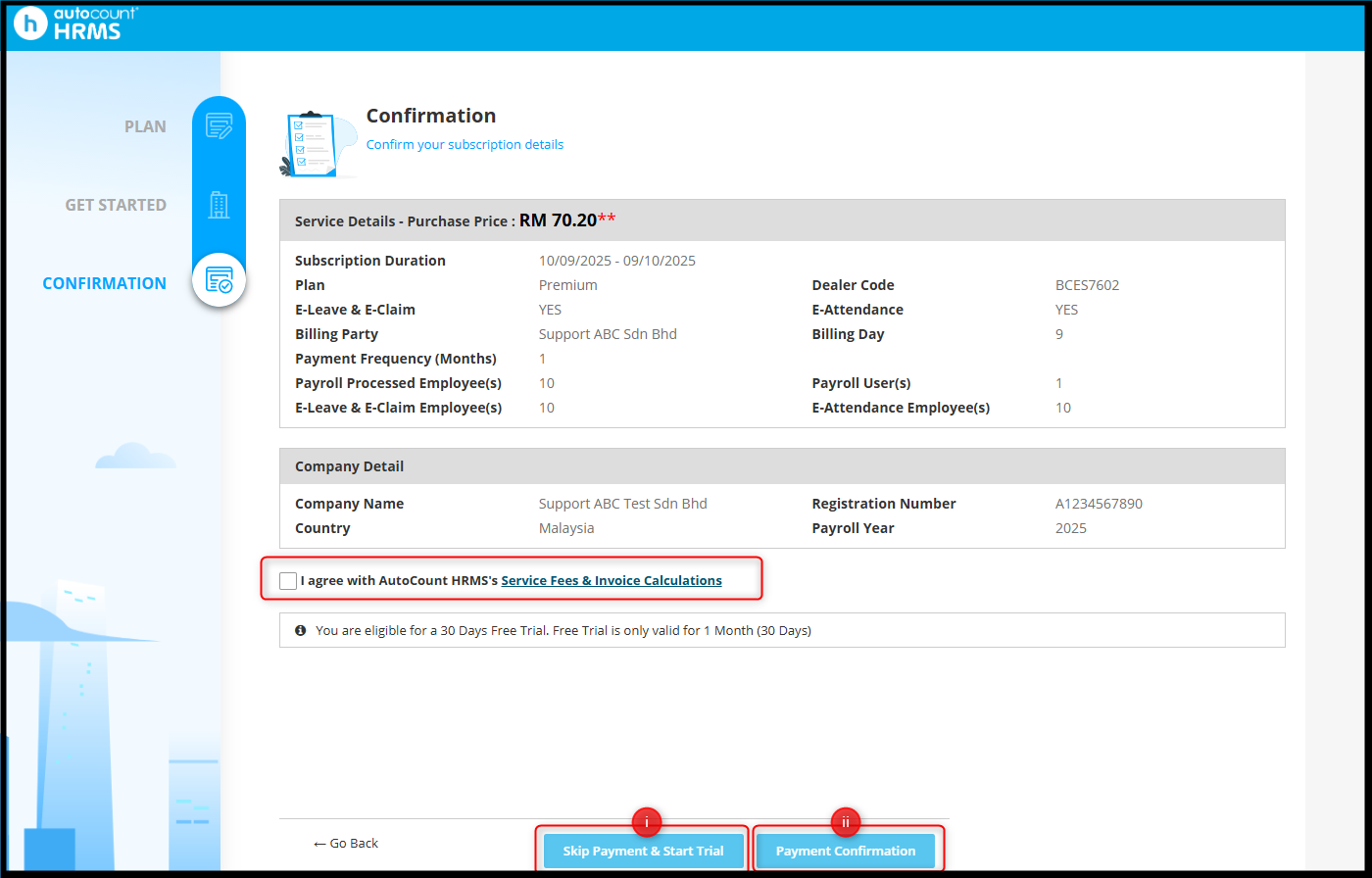 6. The final page is the Confirmation step. Please ensure all the details provided are correct. Once verified, tick the checkbox to agree to the Terms and Conditions. Before proceeding with the payment, you can choose one of the following options: