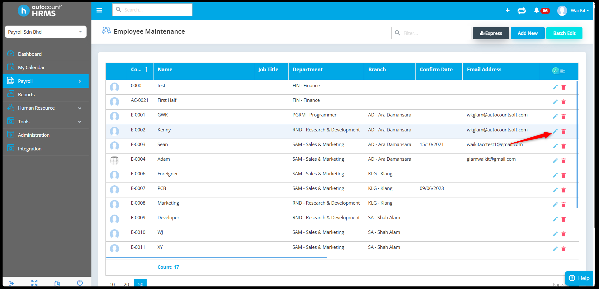 2. Then click the pencil icon to edit the selected employee.