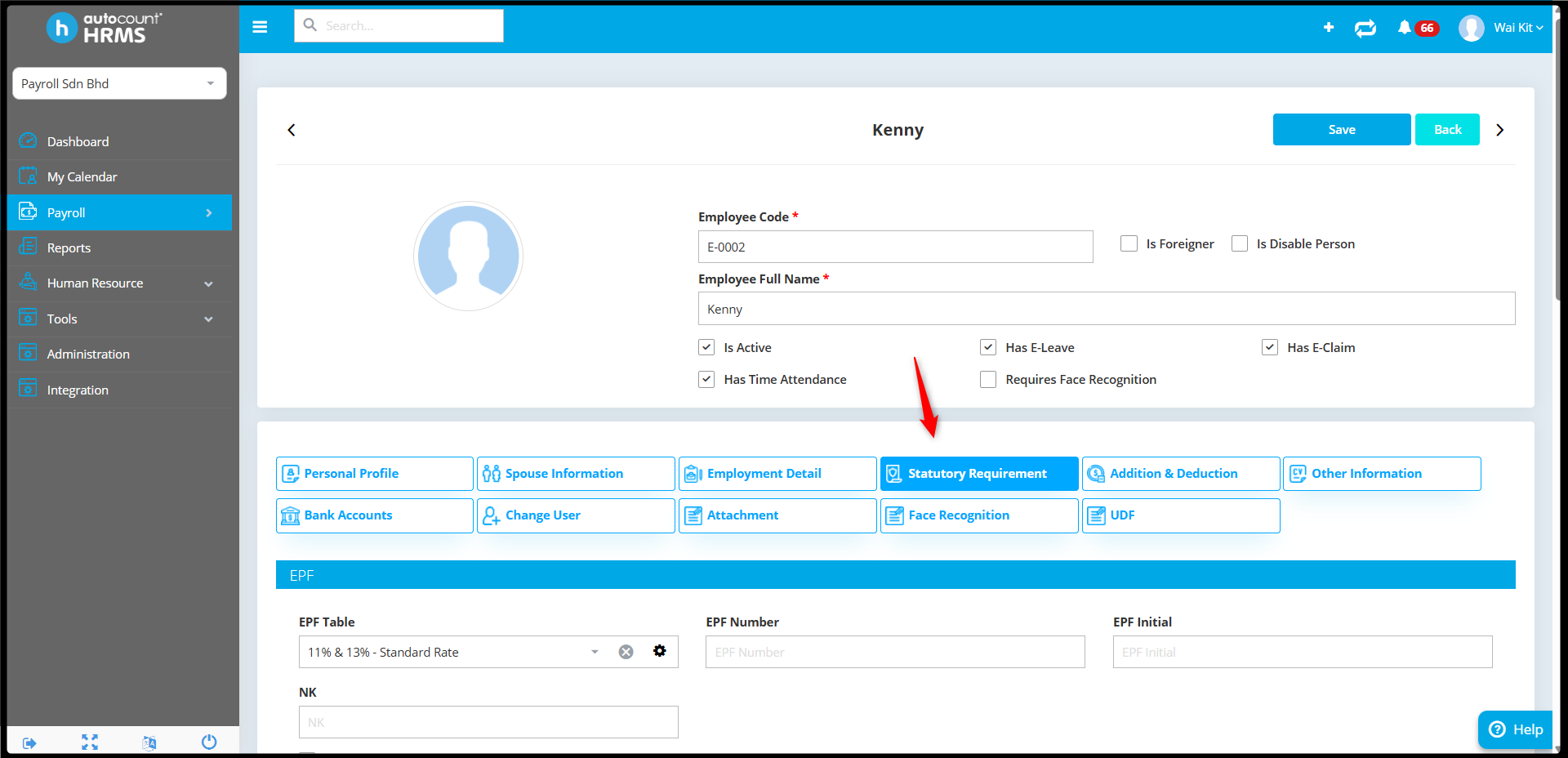 3. Navigate to the Statutory Requirements section and scroll down to the bottom of the page.