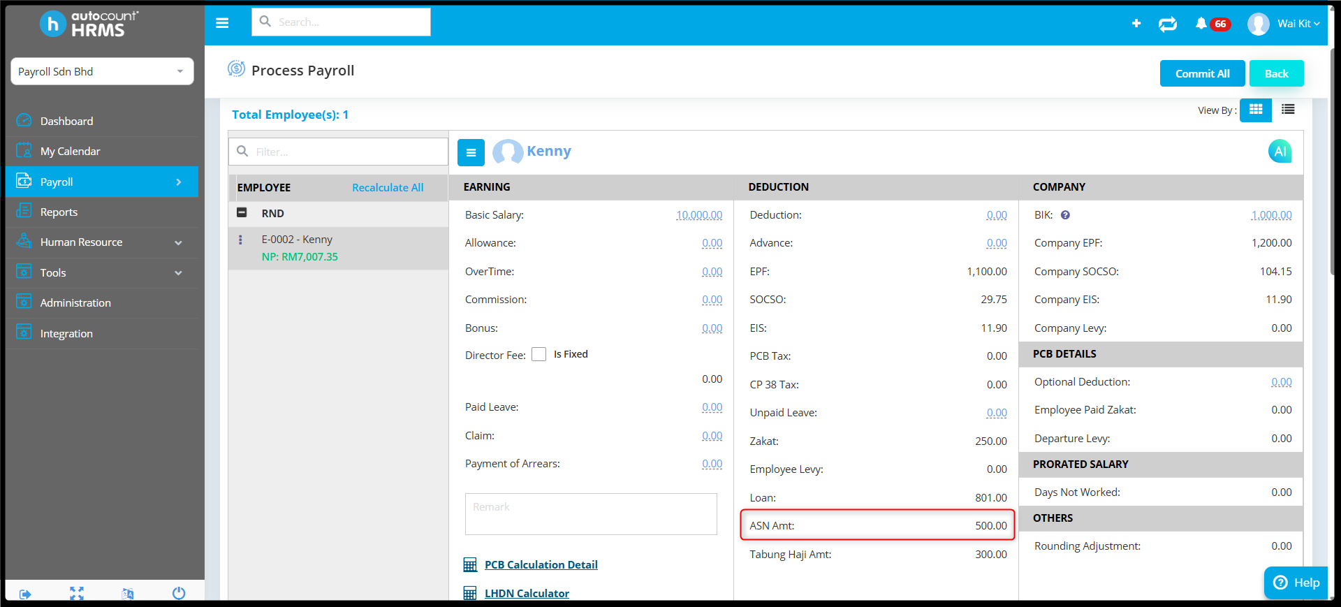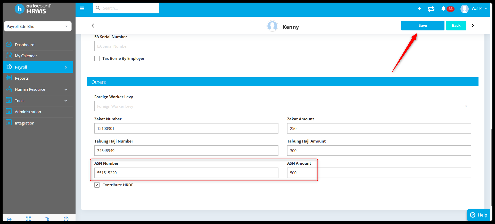 6. The ASN details have been successfully saved and will be reflected in the payroll process during payroll run.