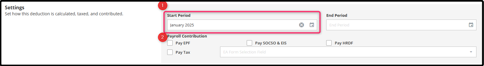 In this example, we set January 2025 as Start Period, meaning that the deduction will be applied starting on January 2025.
