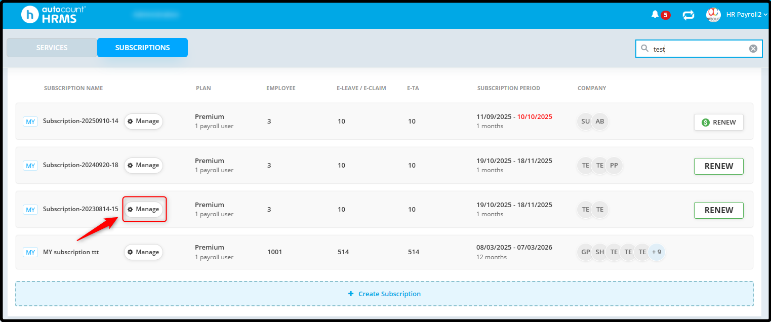 2. Find the company you want to cancel the transfer, then click the Manage button next to it.