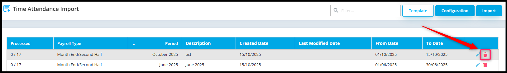 After deleting the import, you can now amend the clock in/out records under Attendance Transaction.