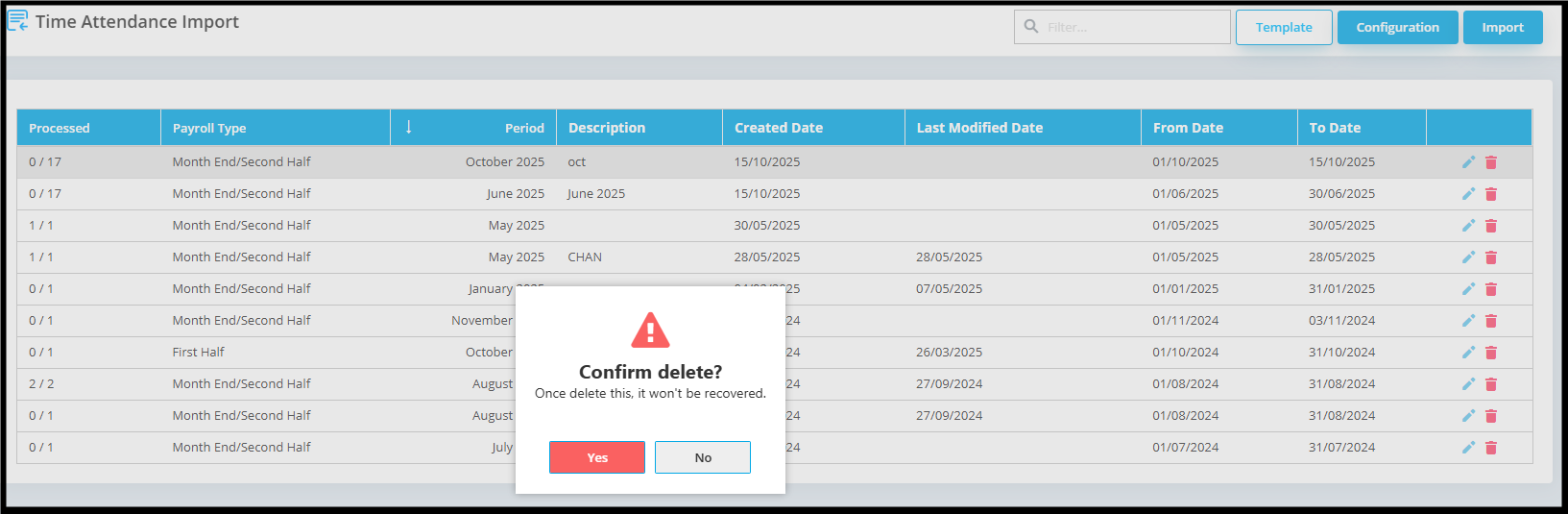 The attendance clocking cannot be amended because the time attendance for that period/month has already been imported.