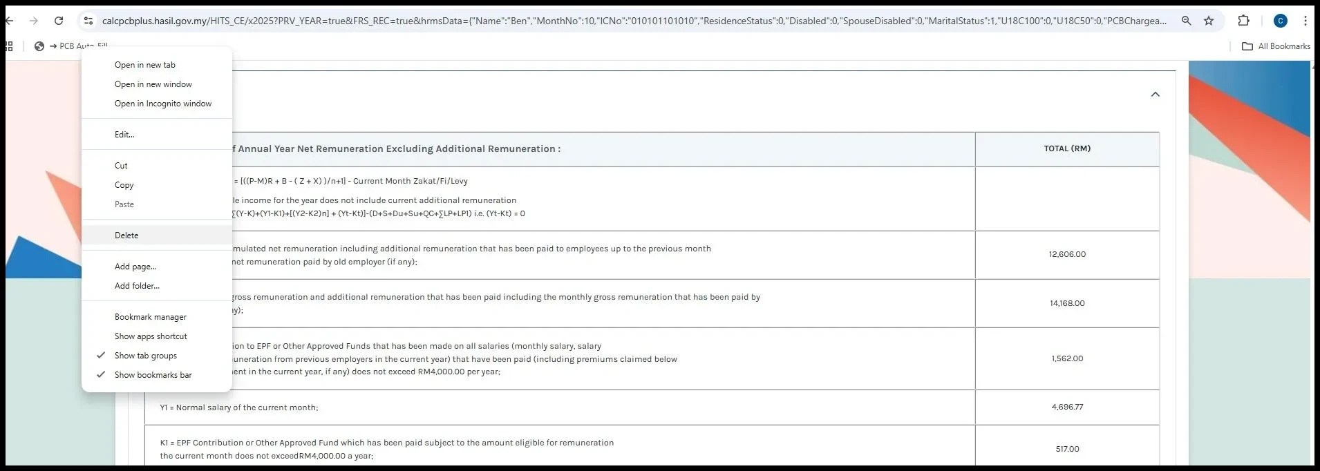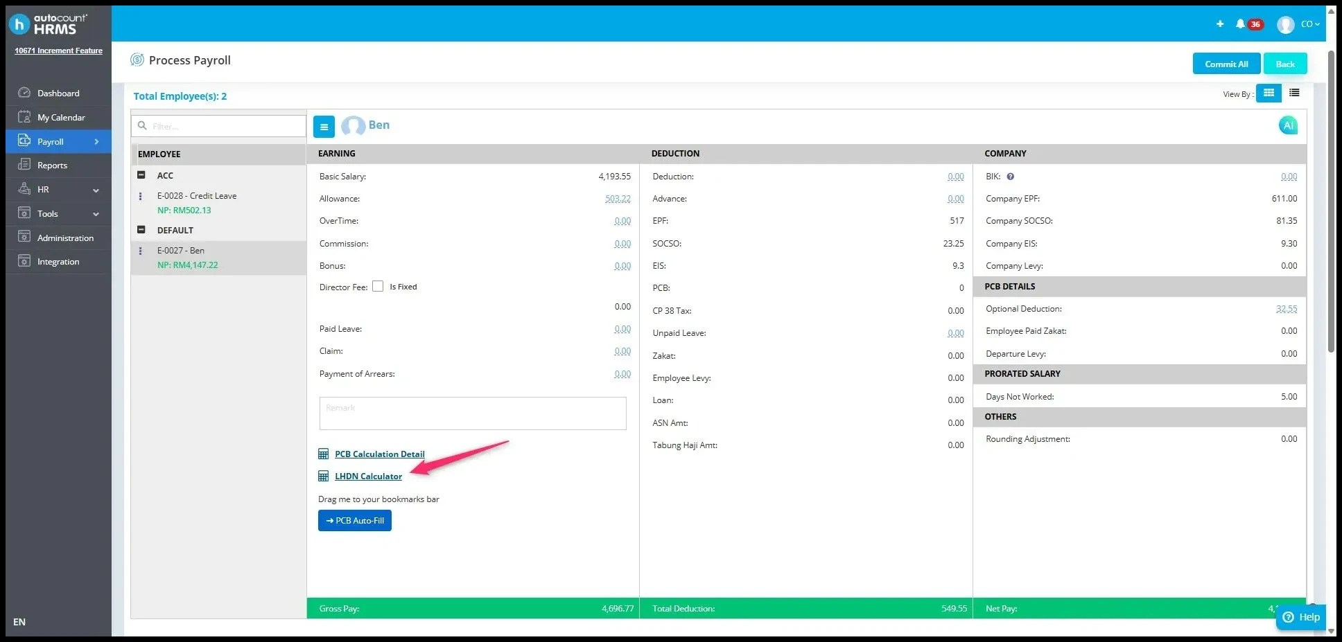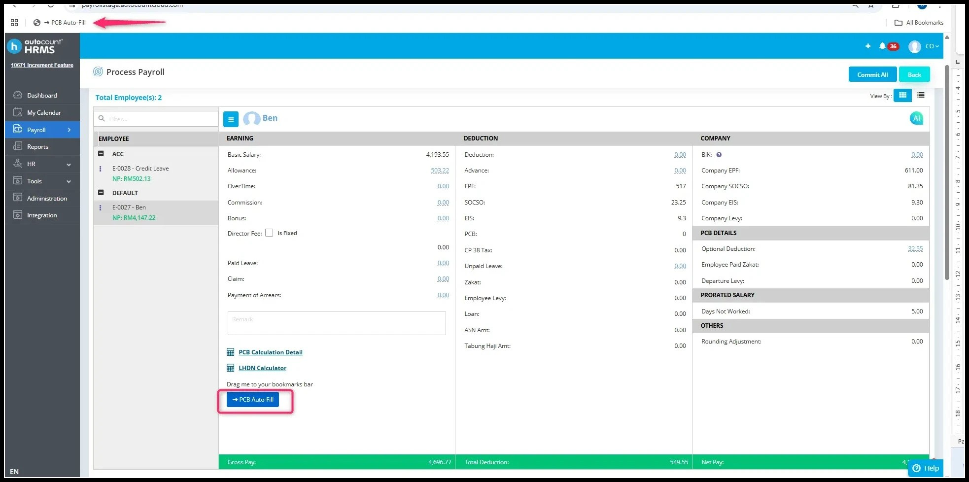 1. Go to Process Payroll > LHDN Calculator and drag the "PCB Auto Fill" button to your bookmarks bar.