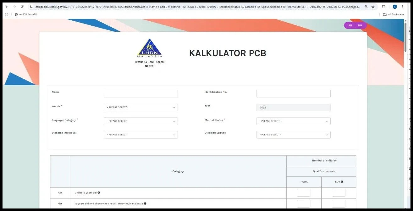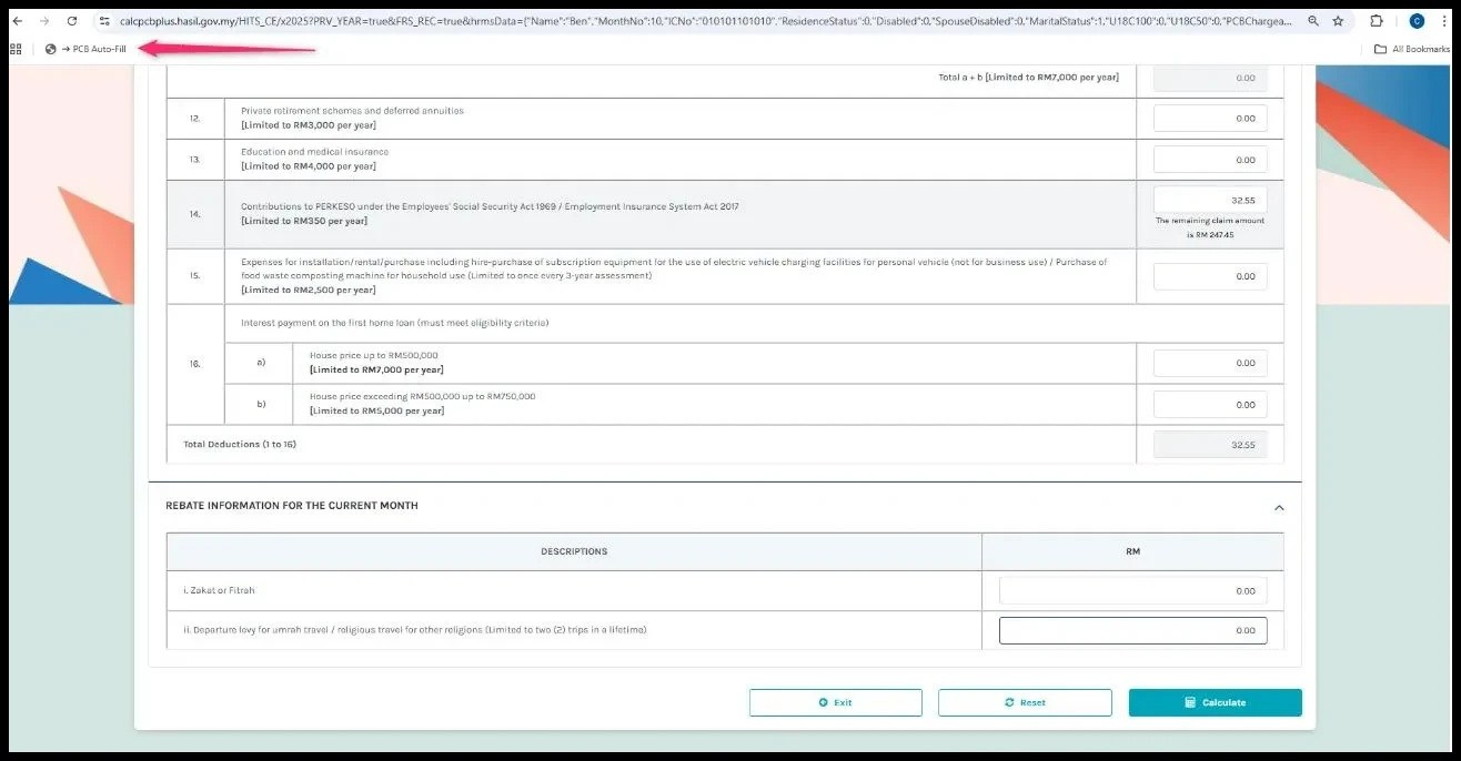 3. In LHDN Calculator page, click the PCB Auto Fill. The system will auto-populate the required details for you.