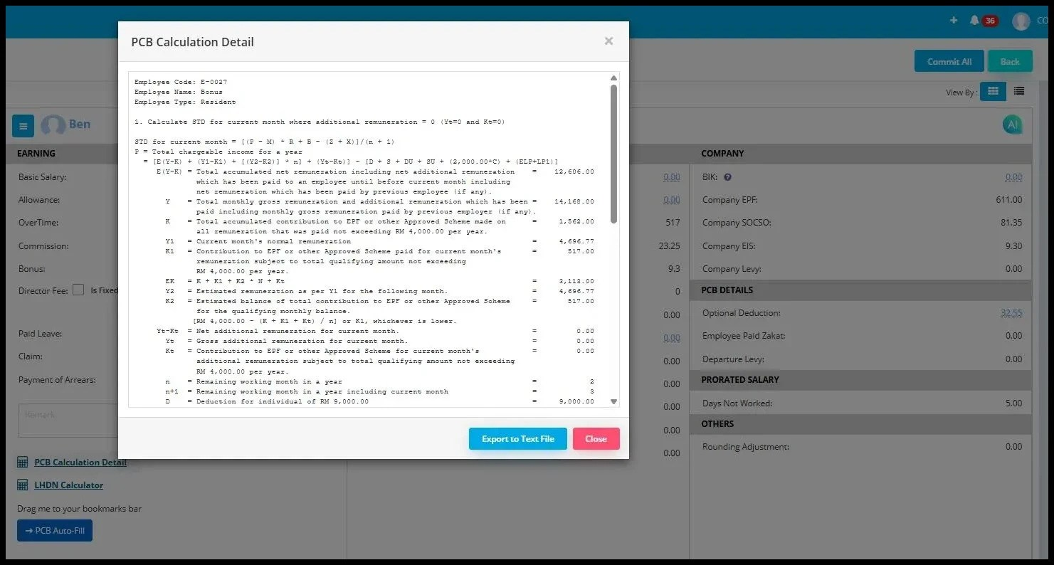 You can now compare our PCB Calculation Details with the LHDN Calculator without manually entering the data. The system will automatically pre-fill the information for you with just few simple steps.
