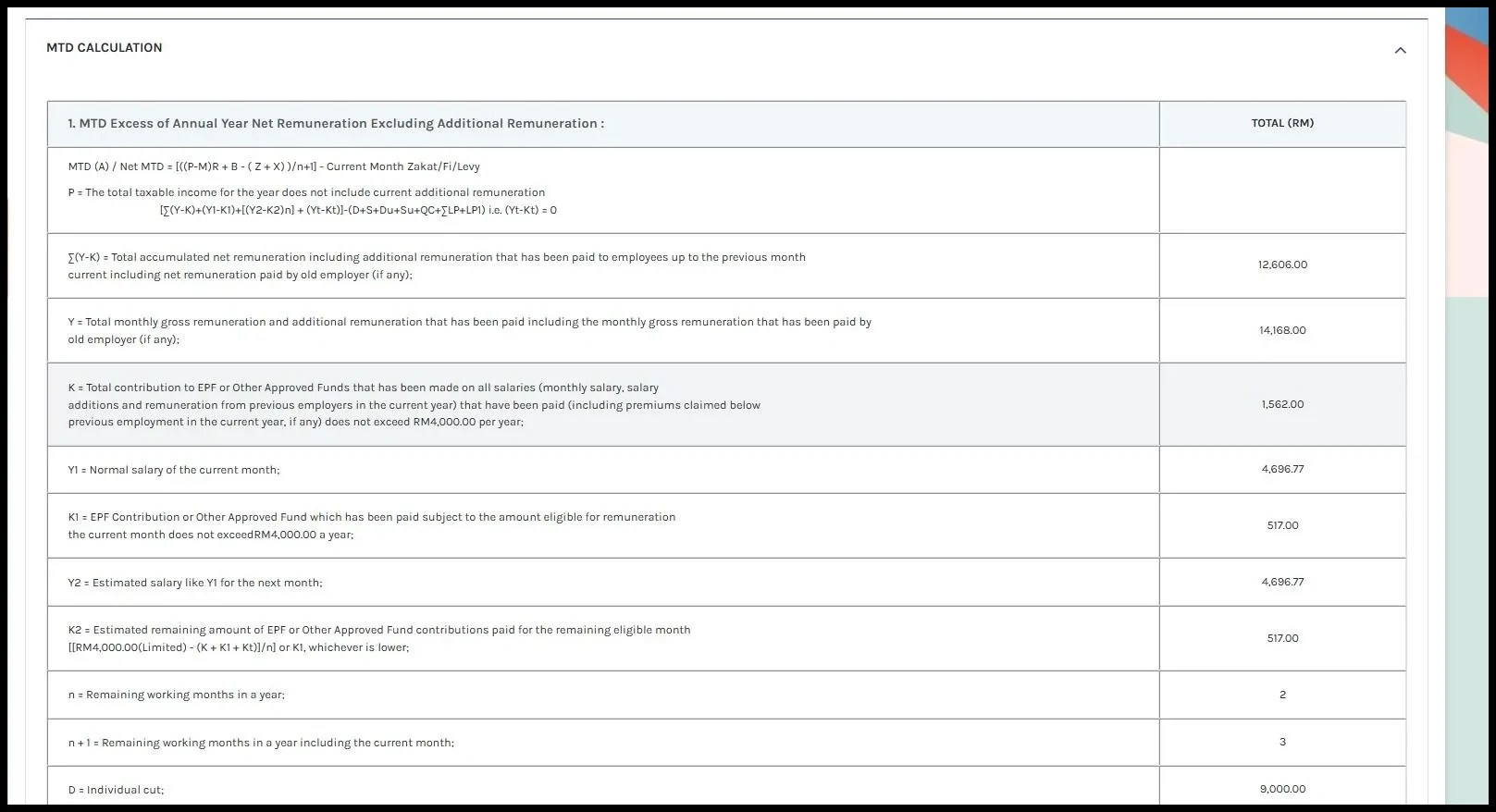 4. Click Calculate and you can easily compare the PCB Calculation details with the LHDN Calculator results.