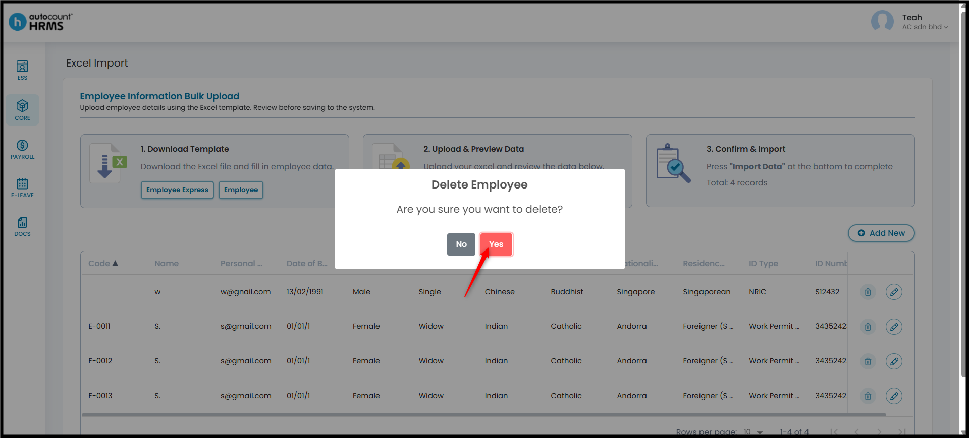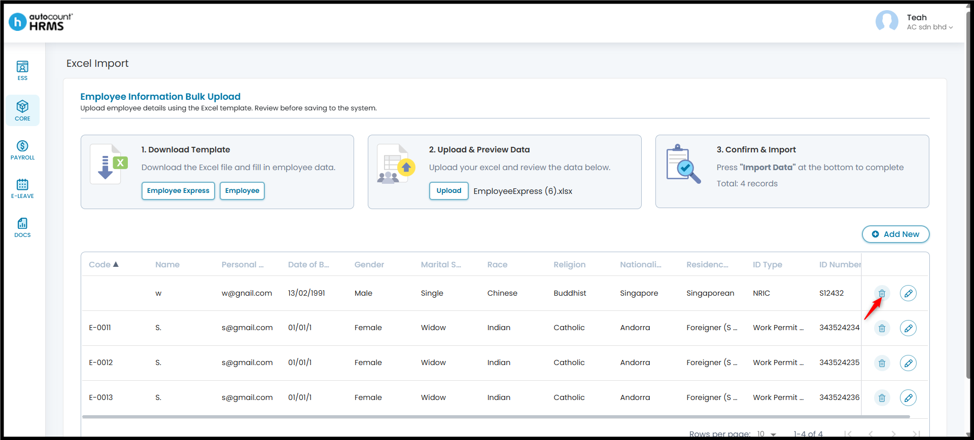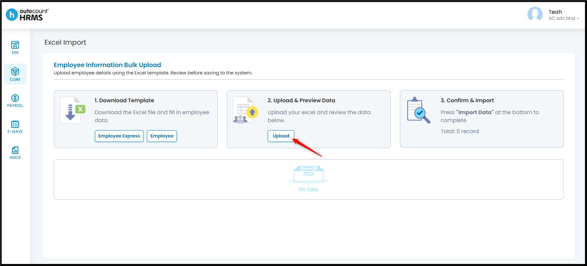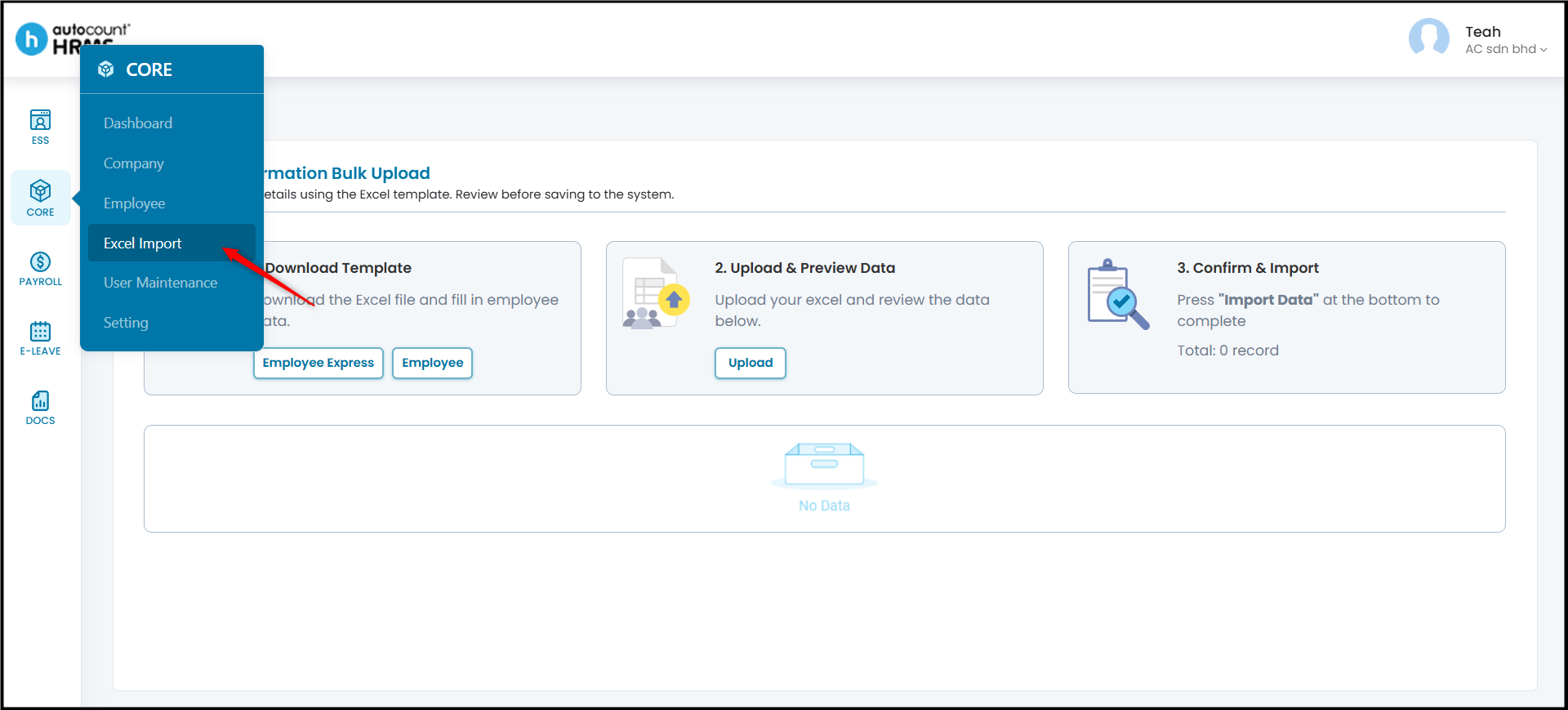 The Excel Import tool in the Core module allows employers to upload employee information in bulk – such as personal information, pay details, payroll profiles, and emergency contacts – using the Excel templates provided.