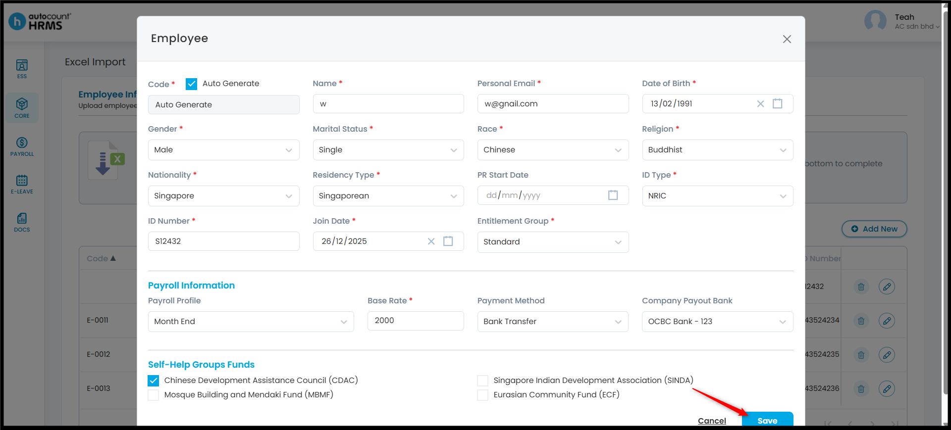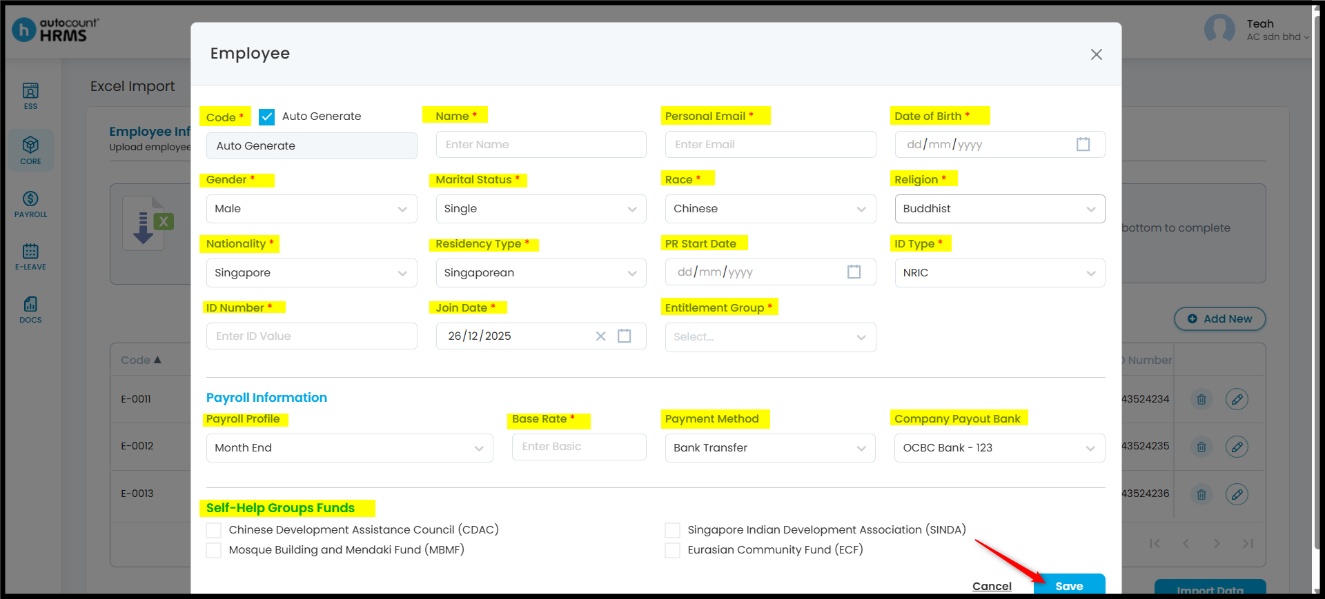 - Enter the required details. Fields marked with an asterisk (*) are mandatory. Then, click Save.