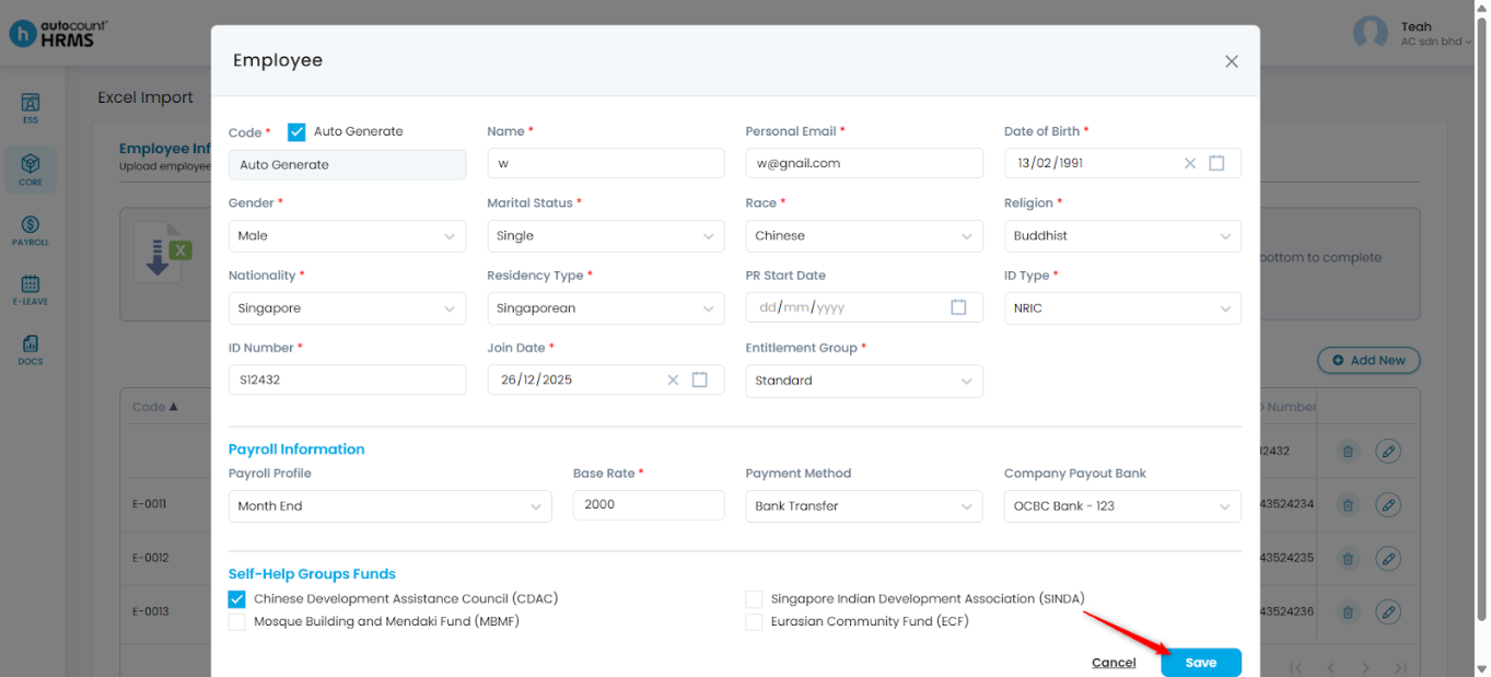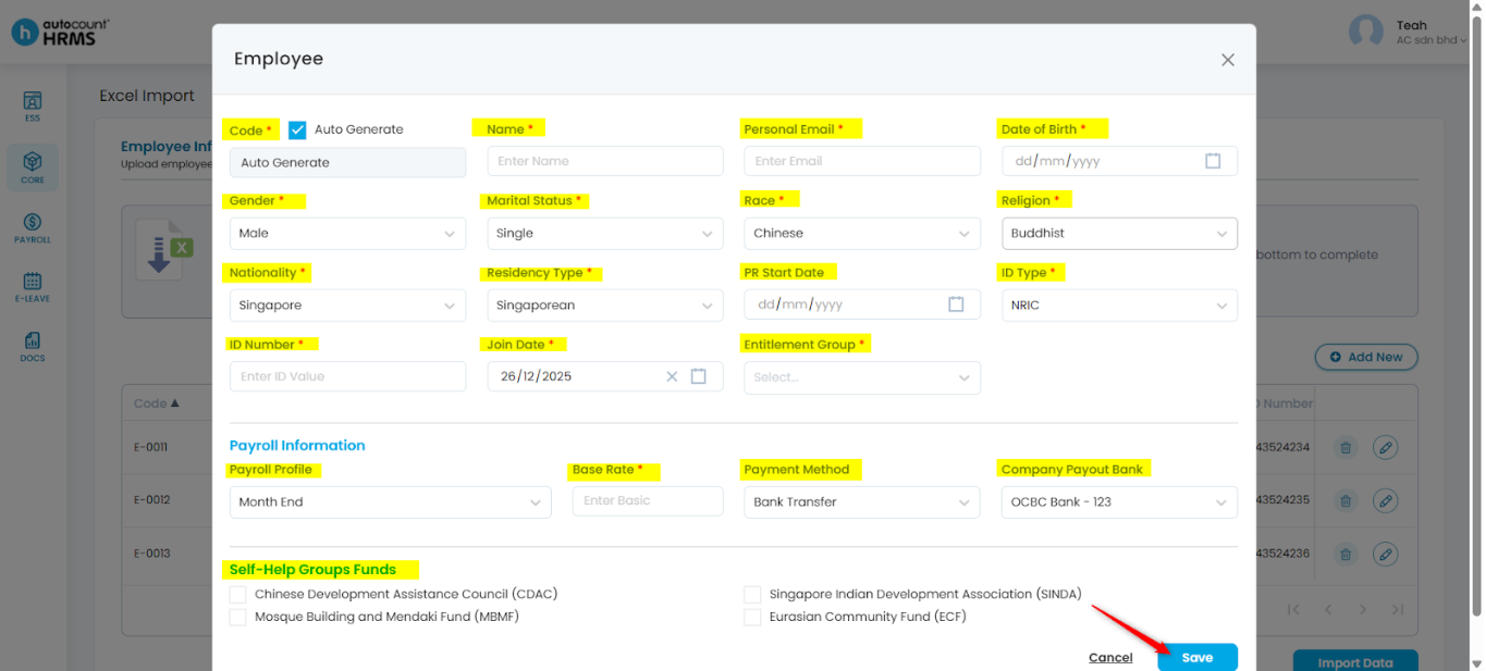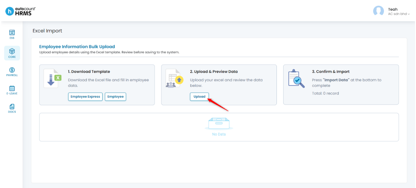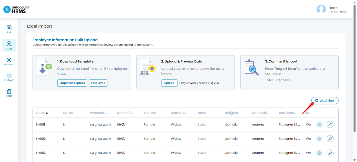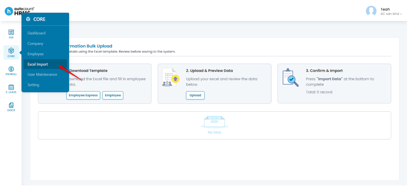 Steps to Import Employee Details via Excel Import:
