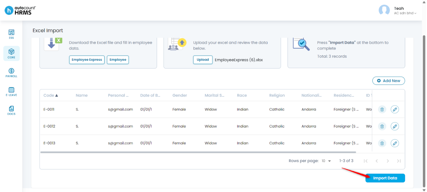 Steps to Edit an Employee’s Details before Importing: