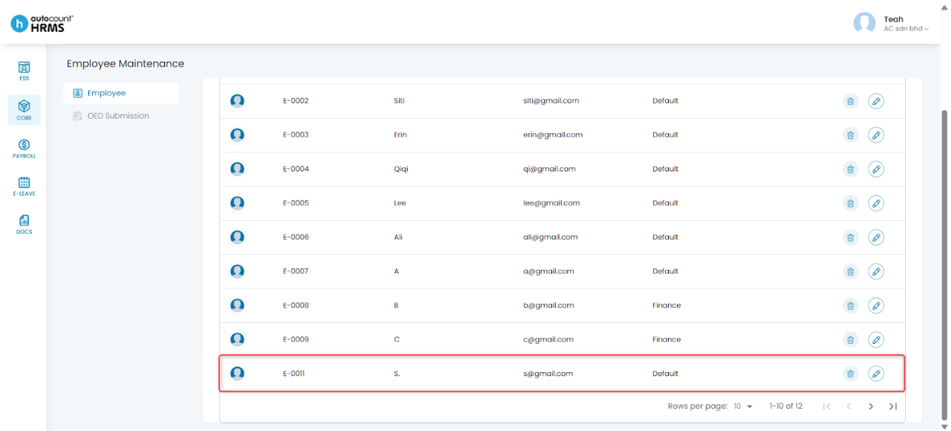 6. You can view and manage the employee records at Core > Employee.