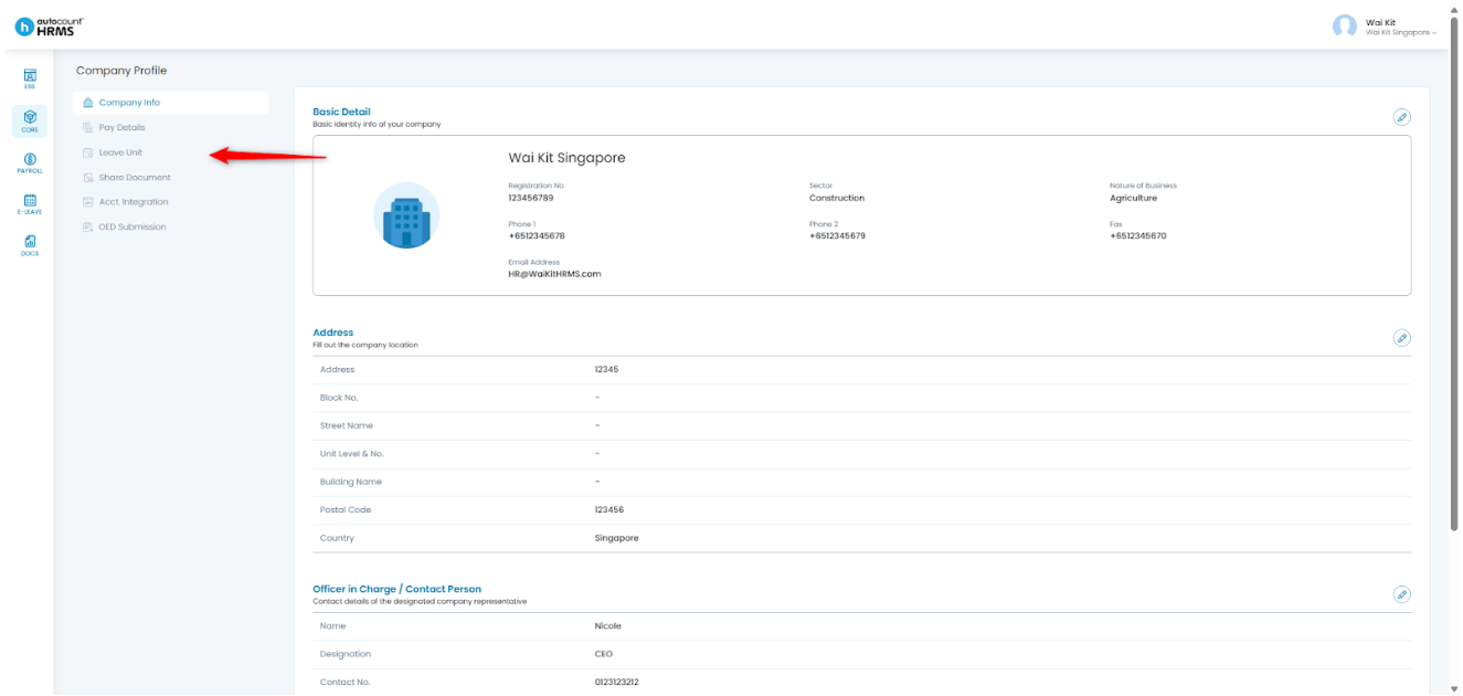 2. Under Company Profile, select Leave Unit.
