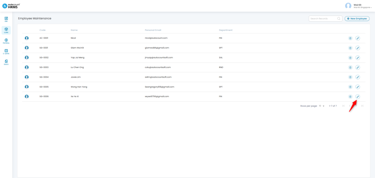 2. Locate the employee you wish to prepare the letter for and click the pencil icon.