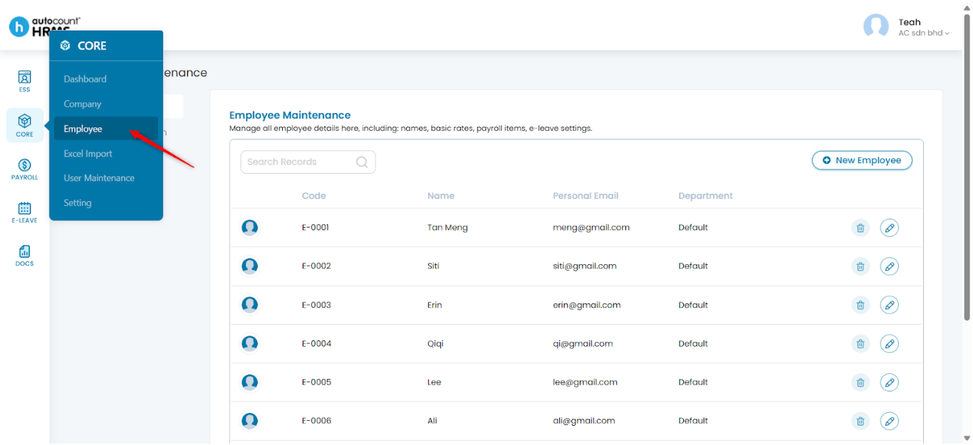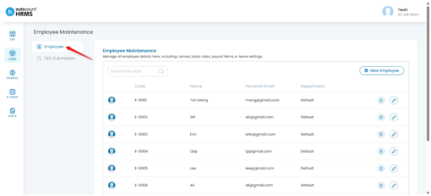 3. Locate the employee you want to update and click the pencil icon beside the employee’s name.