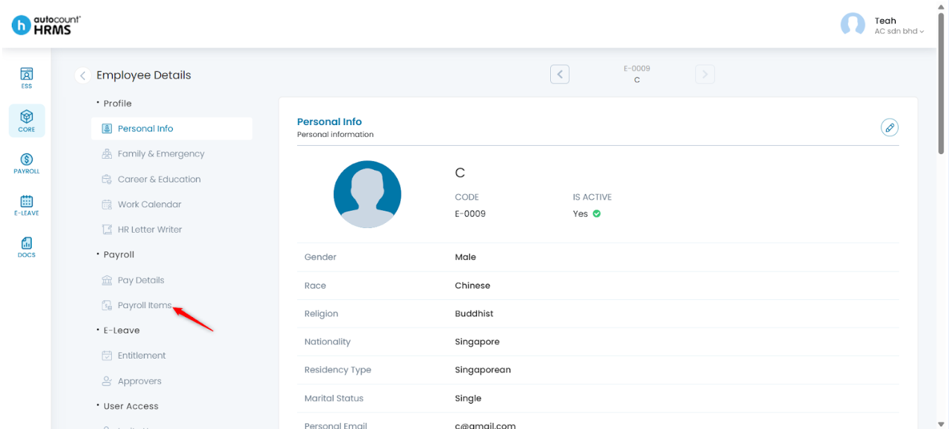 Payroll Items are used to maintain fixed or recurring allowances and deductions for employees. Once set up, these items will be automatically included in the employee’s payroll during each payroll run, ensuring consistent and accurate payroll processing.