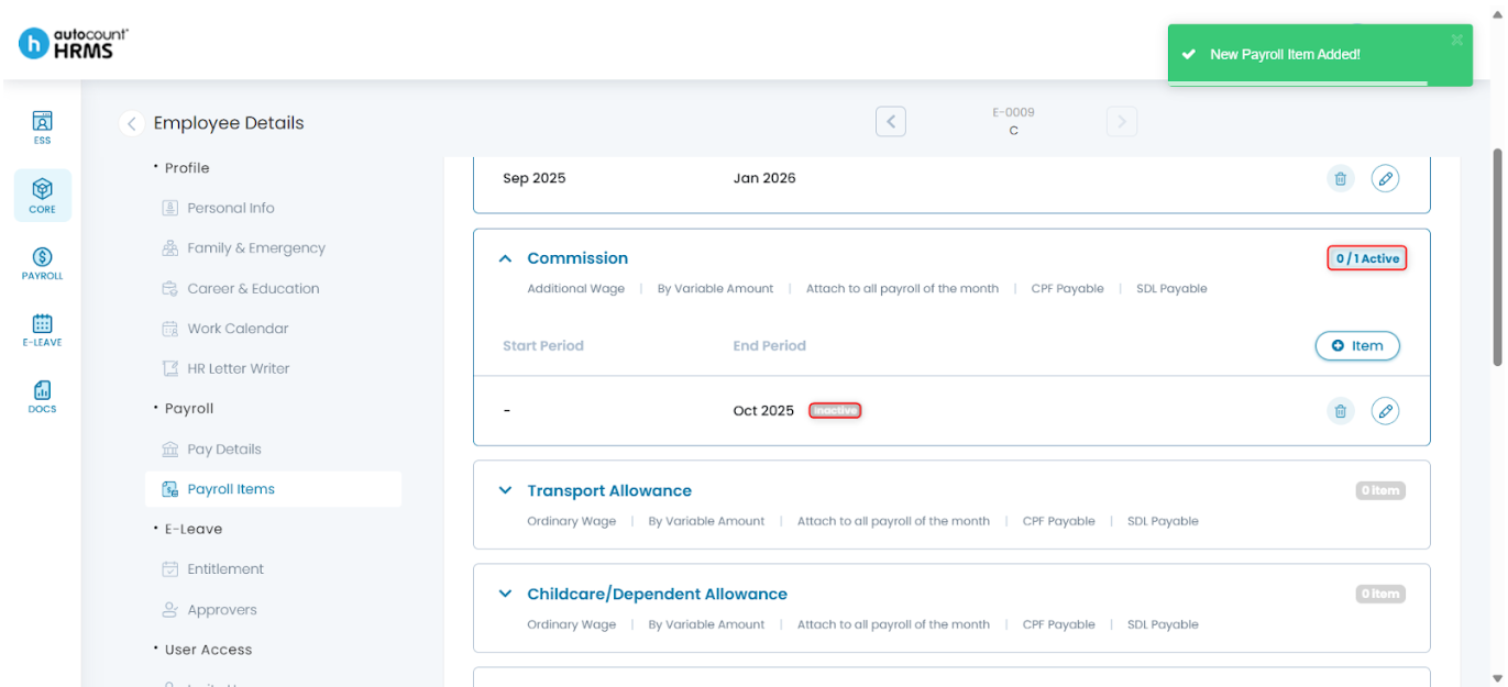 Note: Payroll items will automatically become inactive once the End Period has passed.