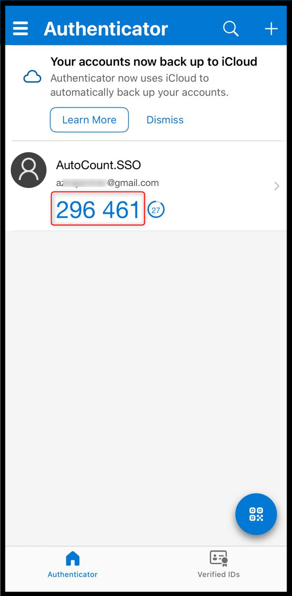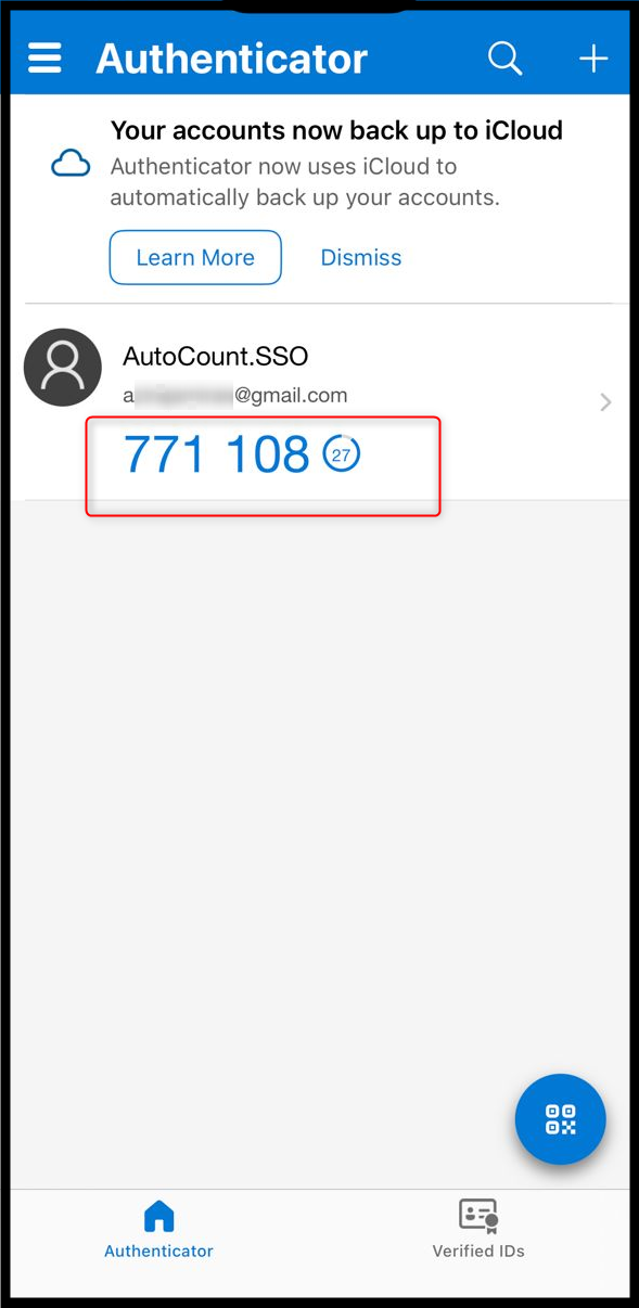 - After scanning the QR code or entering the key, the authenticator app will generate a 6-digit verification code.