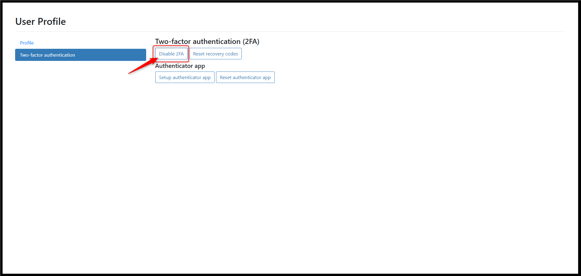 2. Click on Disable 2FA.