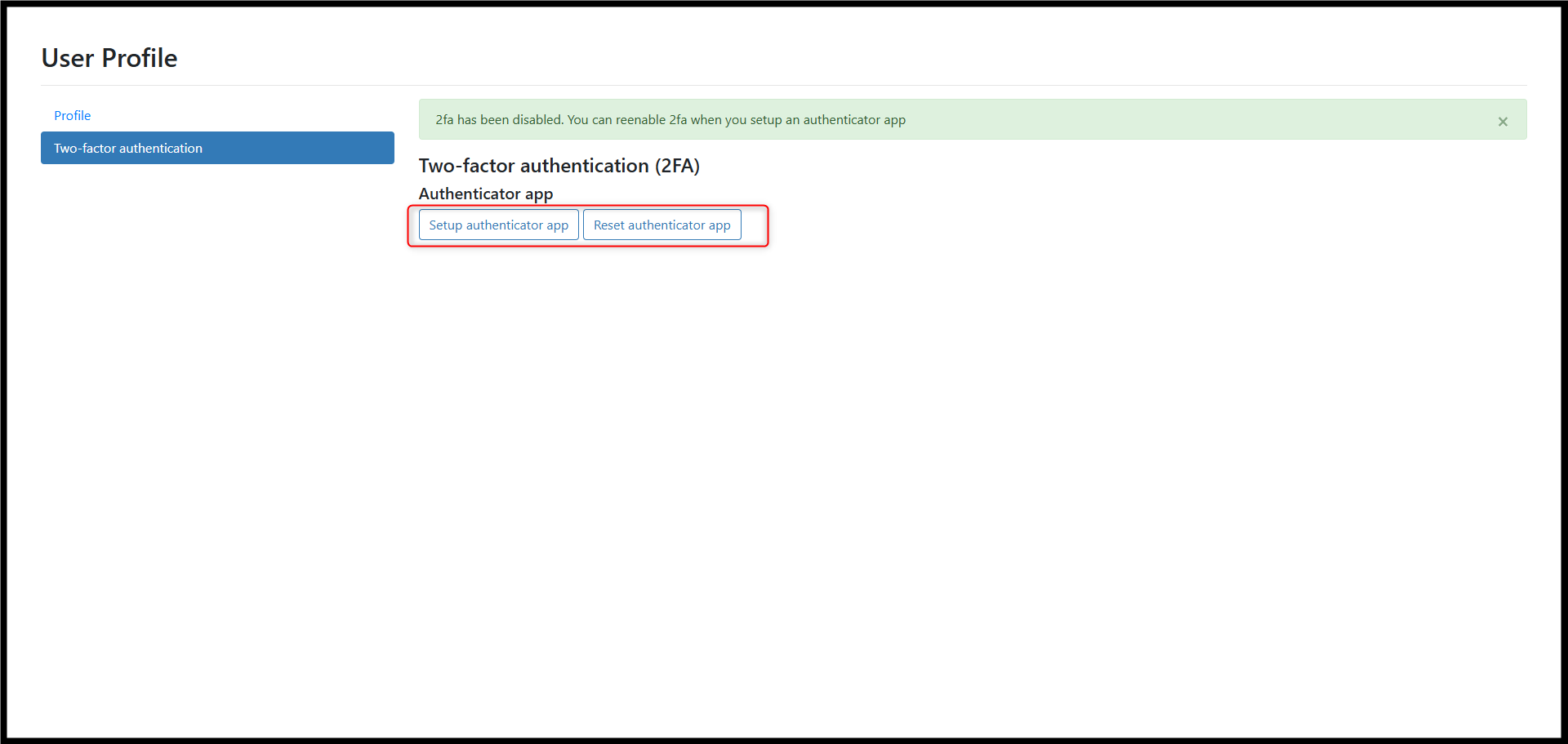 - This action temporarily disables 2FA until the new authenticator setup is completed.