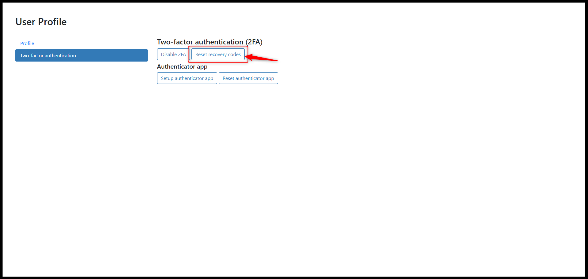 2 . Click Reset recovery codes.