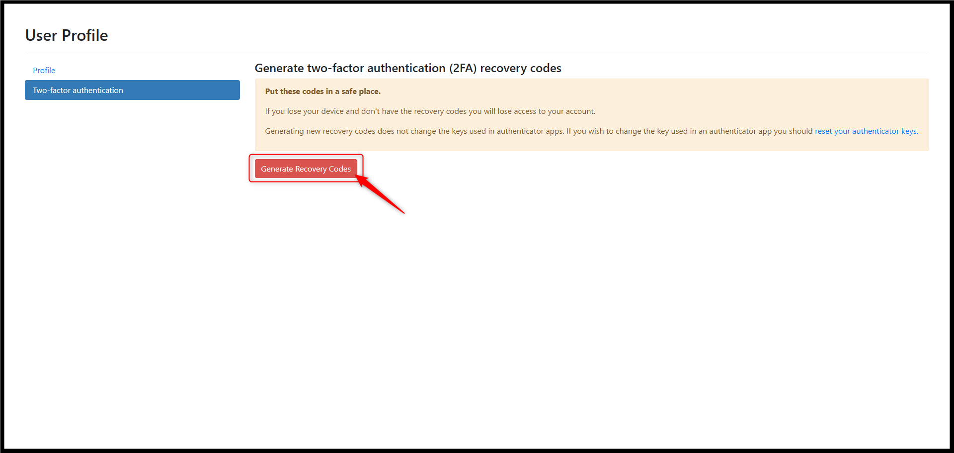3. Click Generate Recovery Codes.