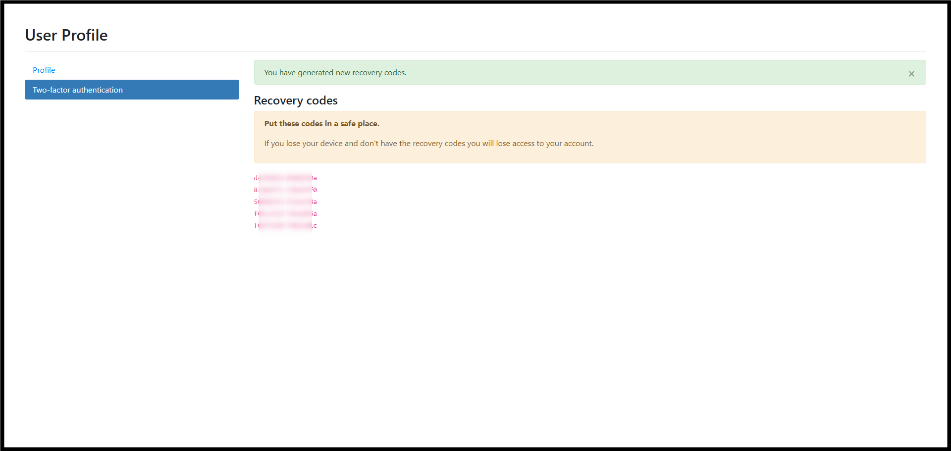 4. New recovery codes will be generated. Save them securely.