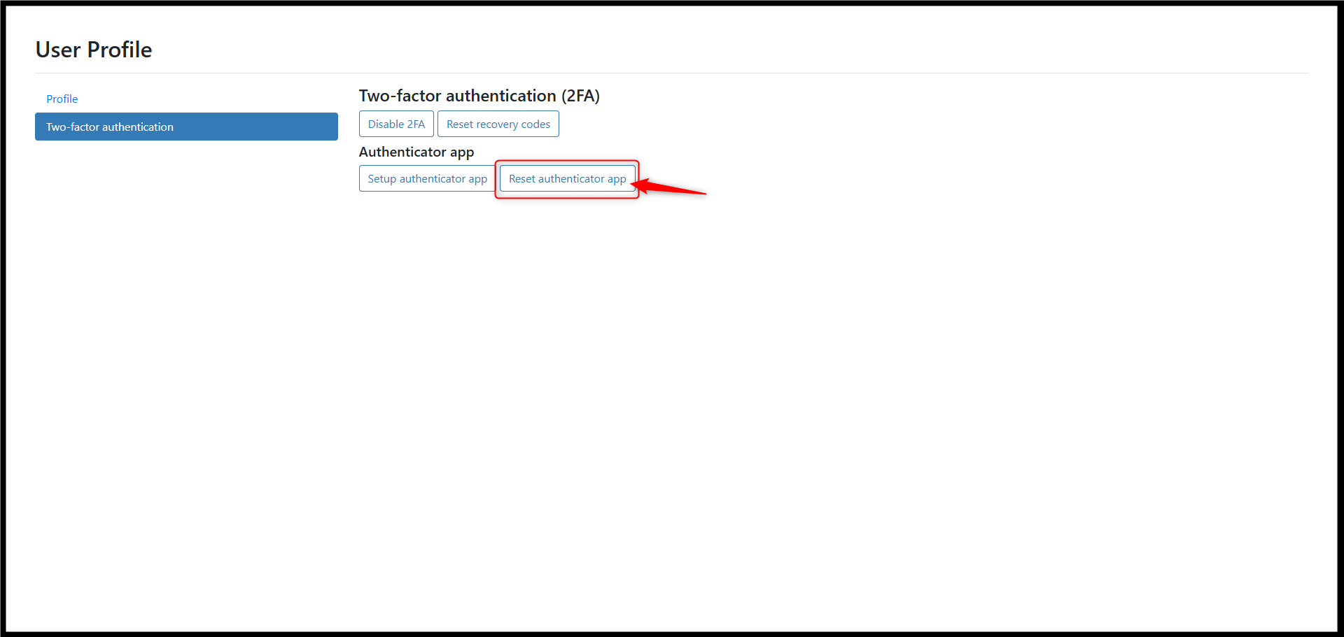 2. Click Reset authenticator app.
