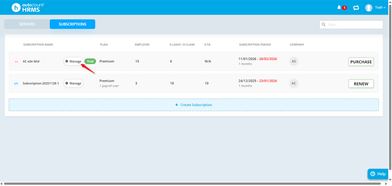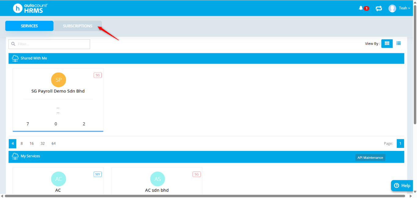 2. Go to Subscriptions.