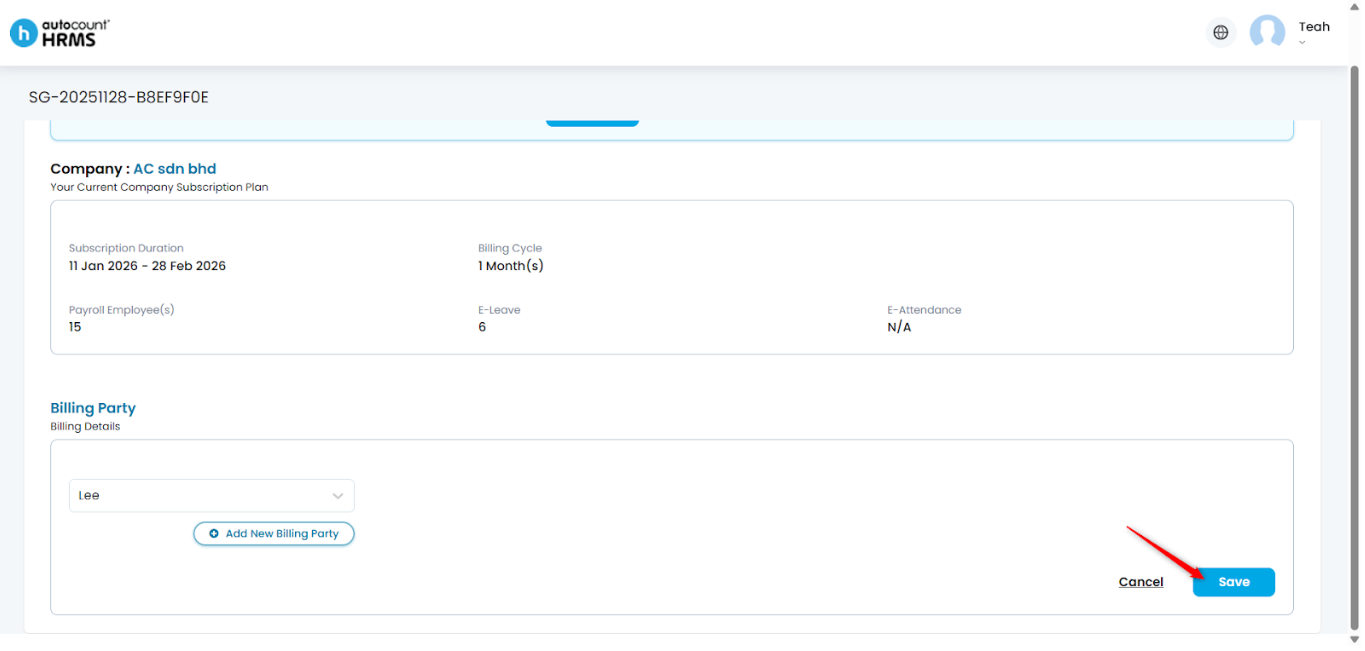 5. To add a new billing party, click + Add New Billing Party.