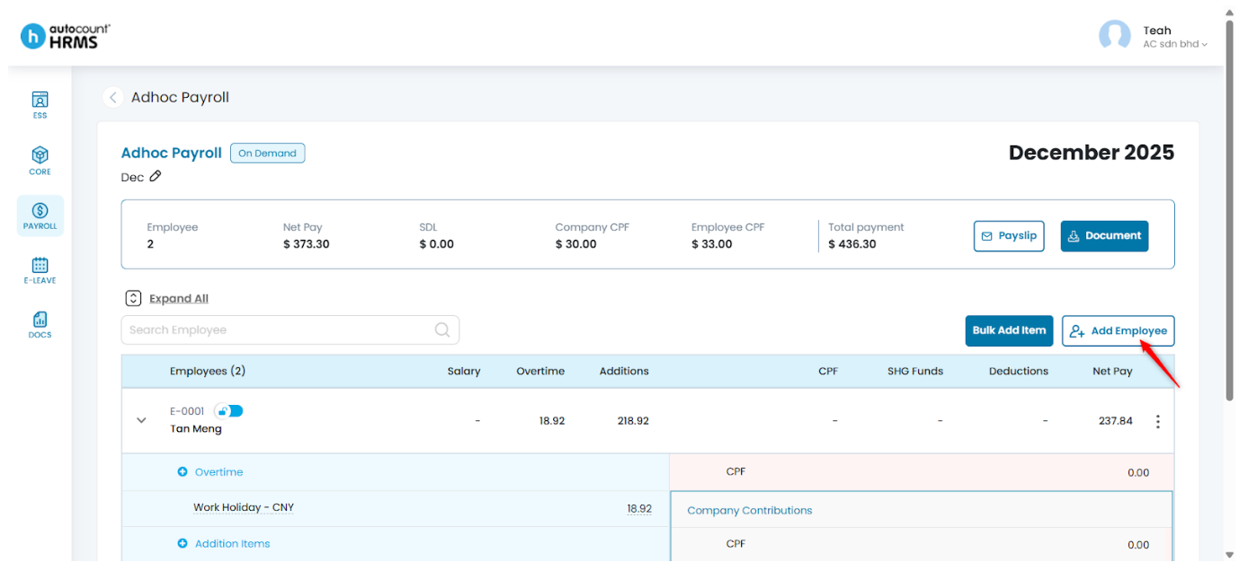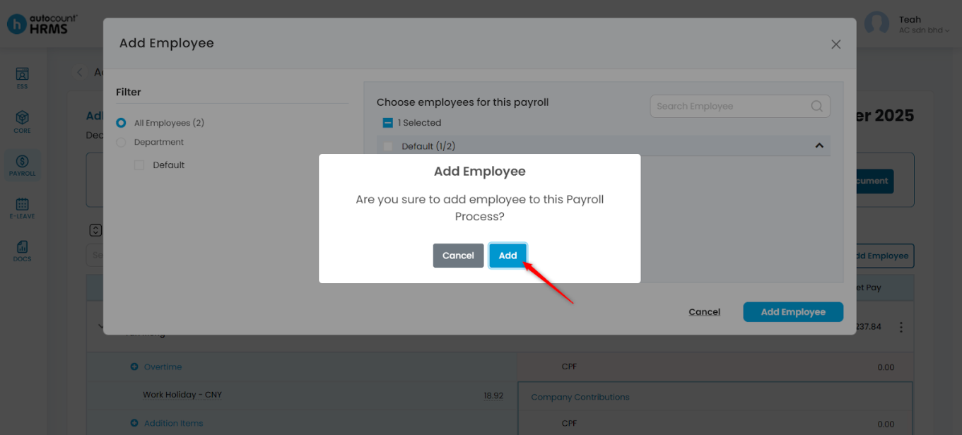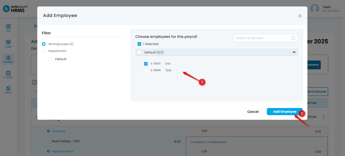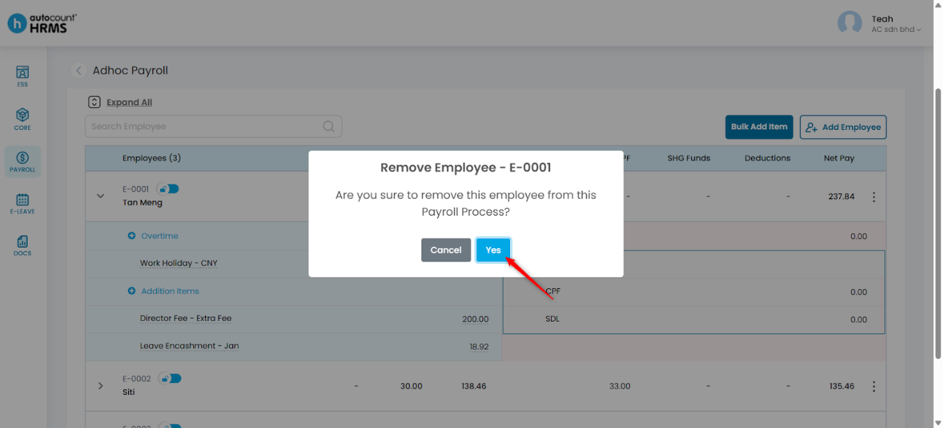 1. Locate the employee you wish to remove, click the three-dot icon, and select Delete Employee.