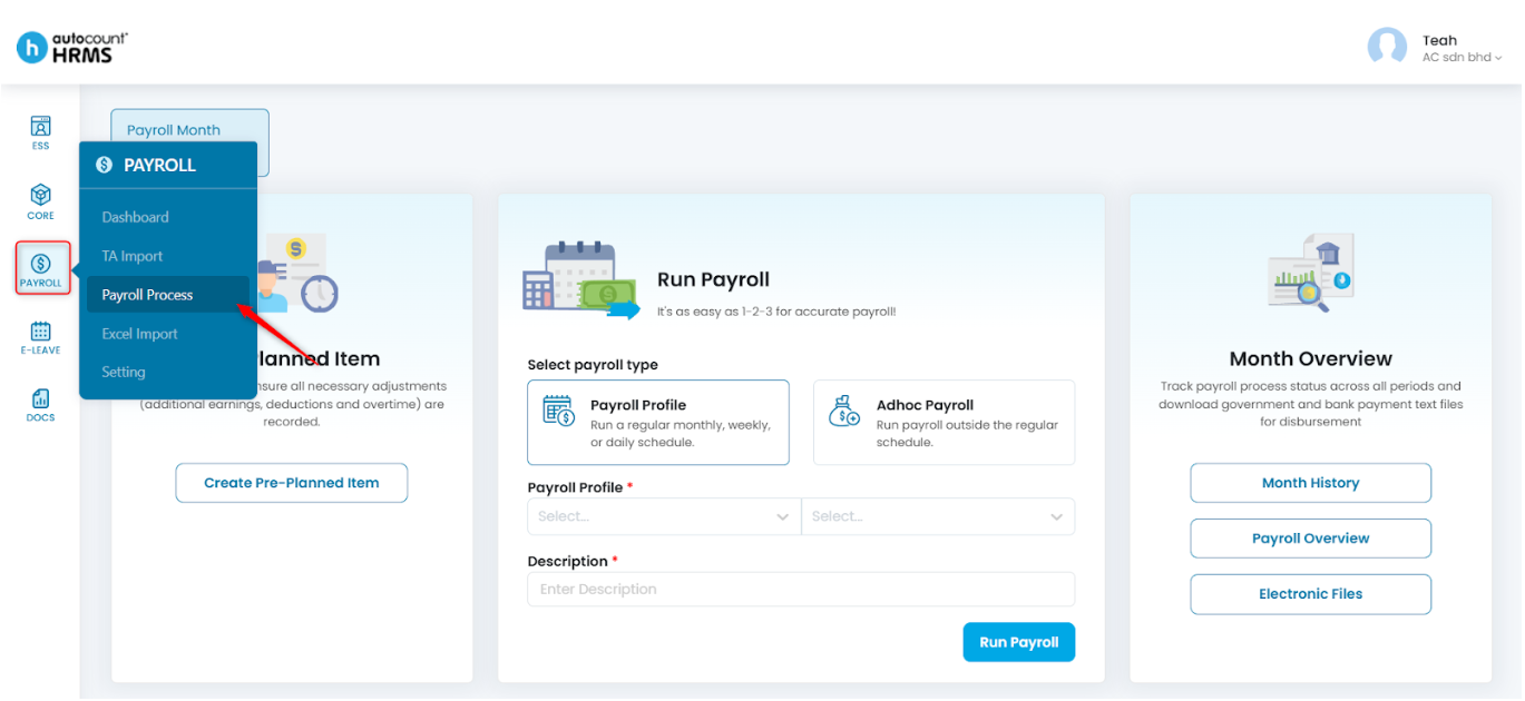 1. Go to Payroll > Payroll Process.